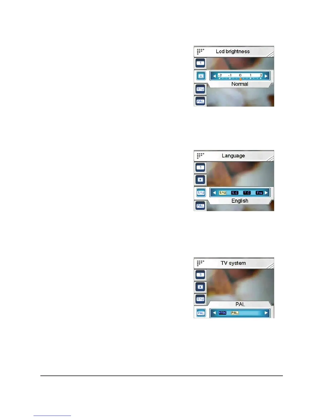 OSD menu of the camera.