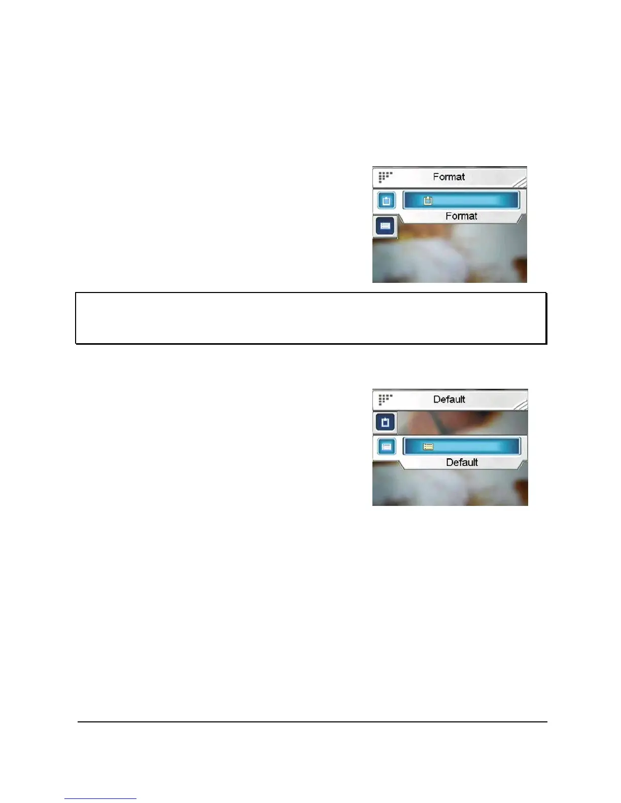 Note: When this function is used, all stored data (including photos and
