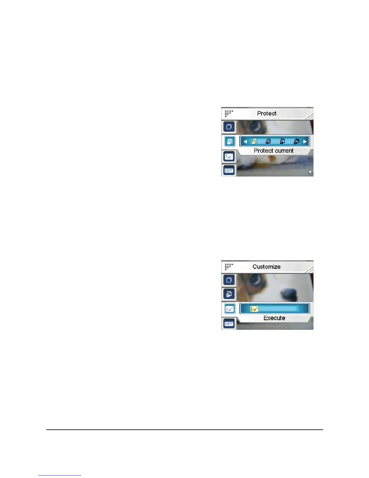 Current, Protect all, Unprotect current or Unprotect