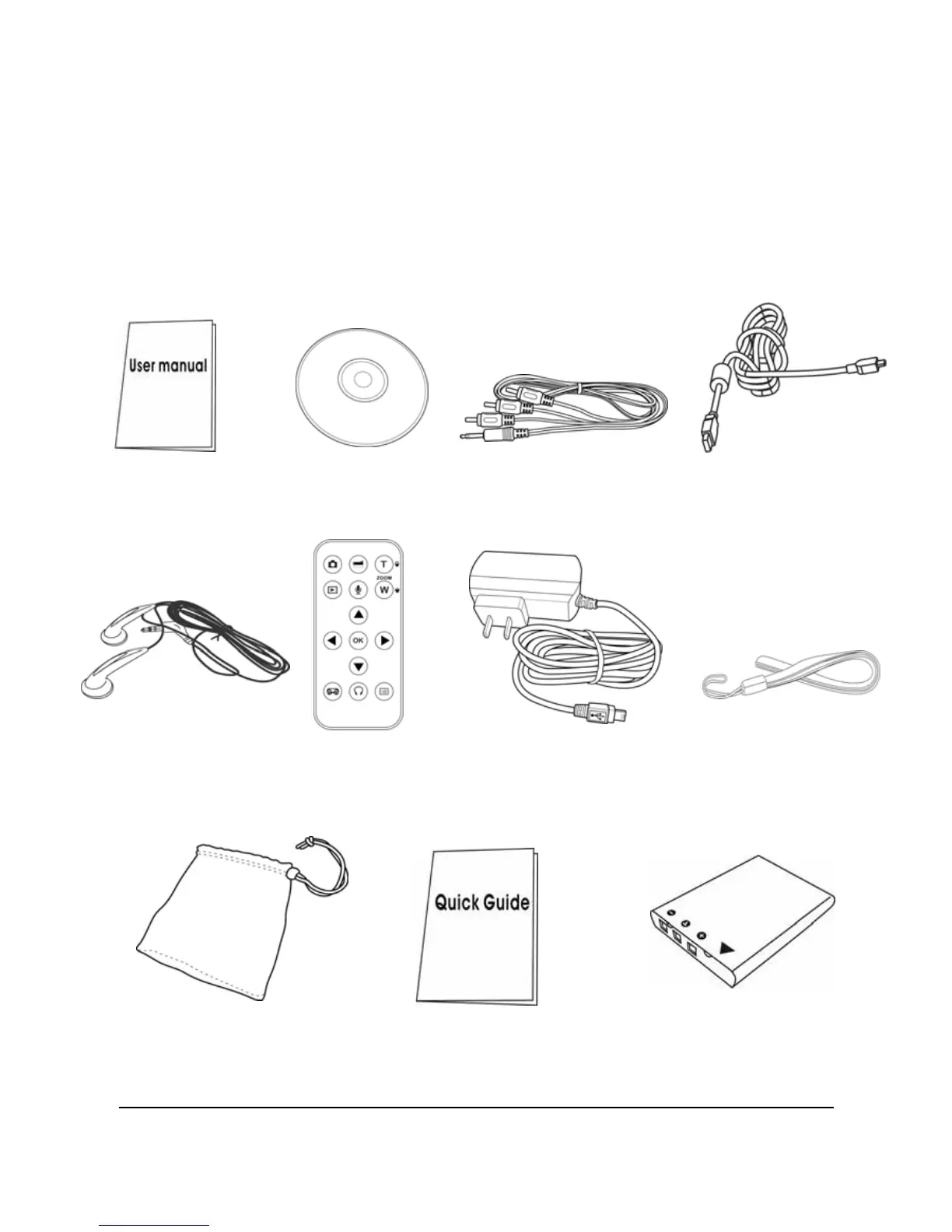 All the following items should be present in the Camera package. If