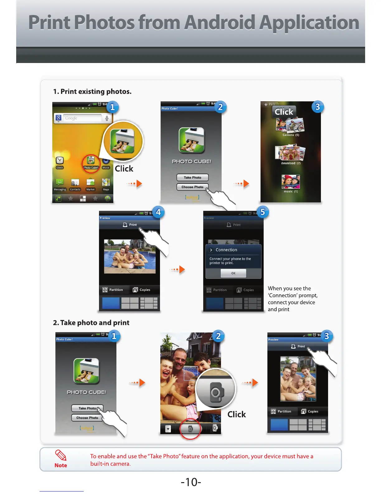VuPoint IP-P10-VP - Printing Photos via Android App; Print Existing Photos; Take Photo and Print