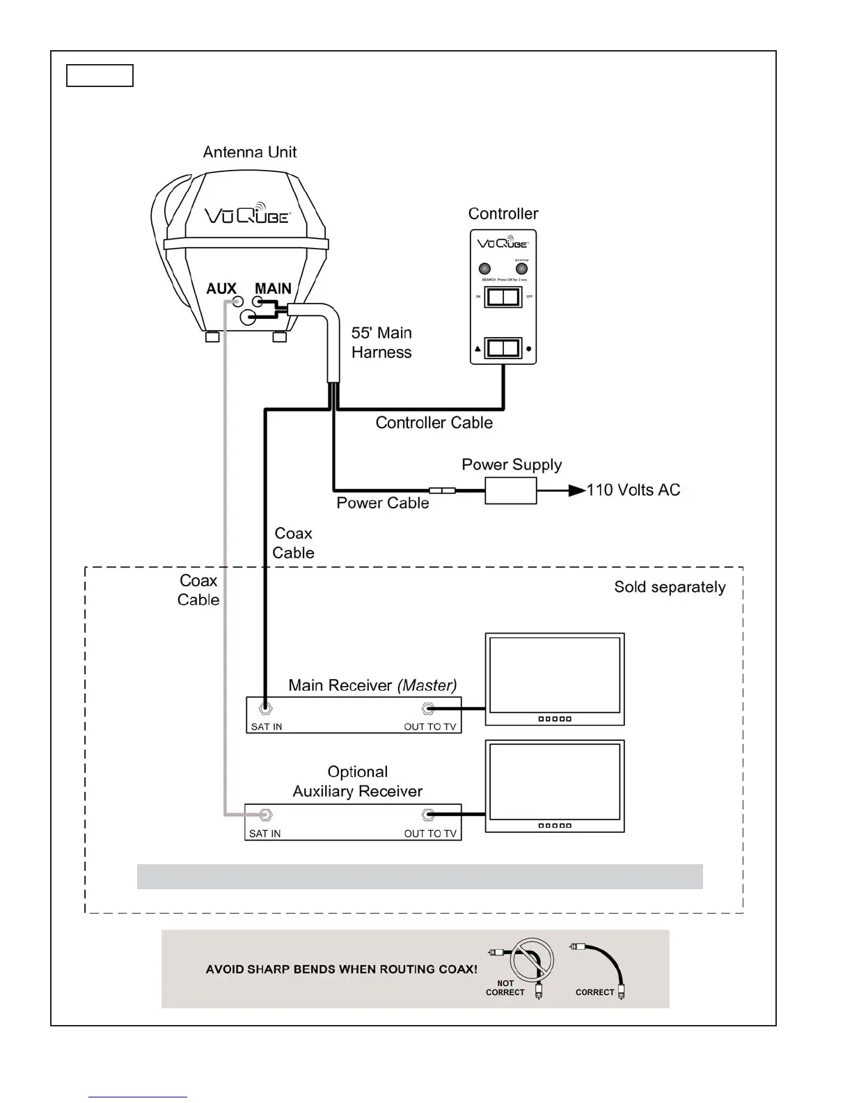 Note: HDTV receivers require HDMI or component video/audio cable connection to TV.