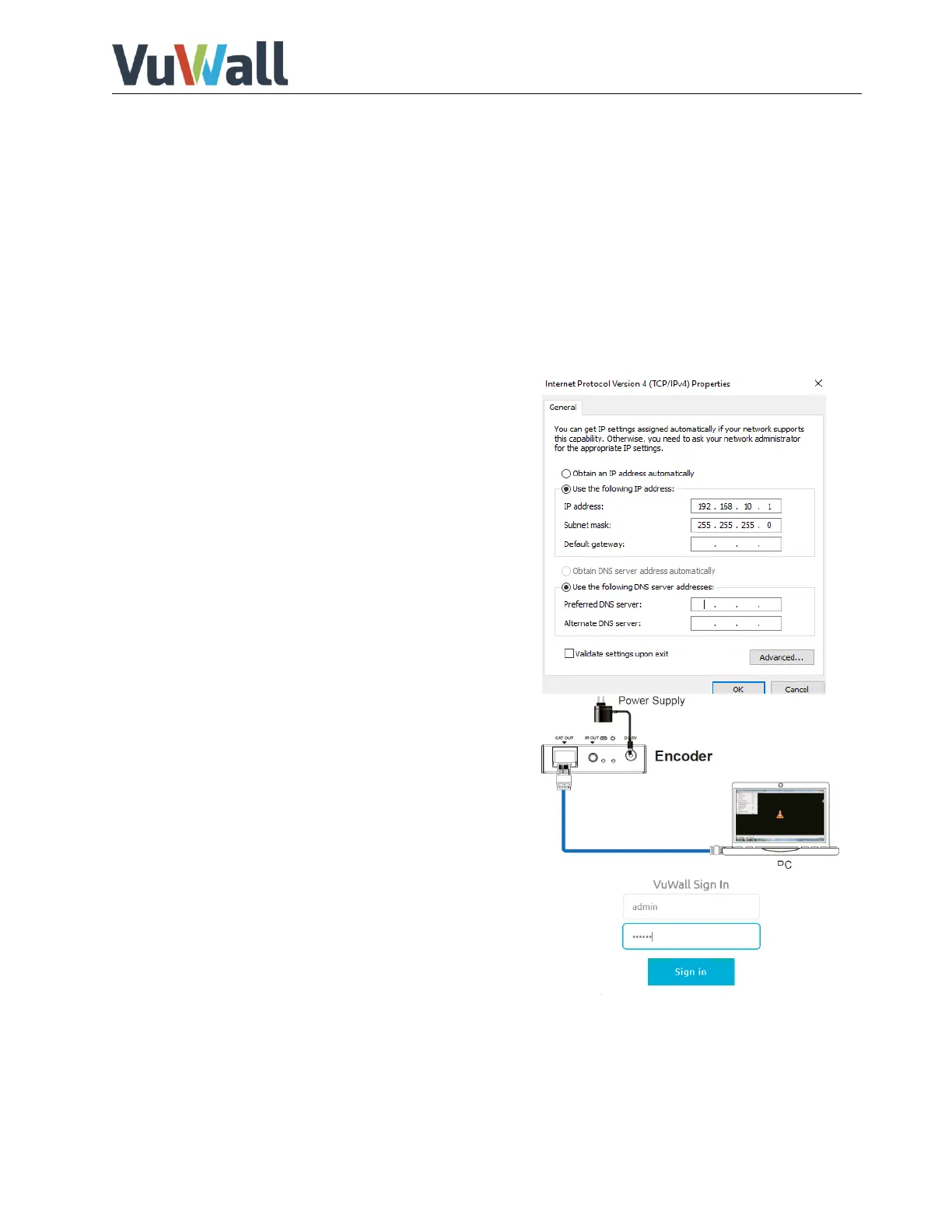 The VuStream150 device can be configured over a Web GUI with a browser. To configure the device via