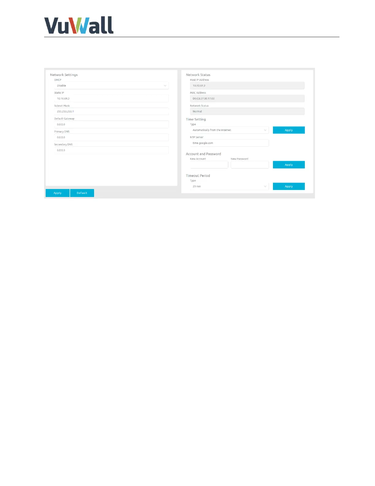 Account/Password: User can assign new account and password here.
