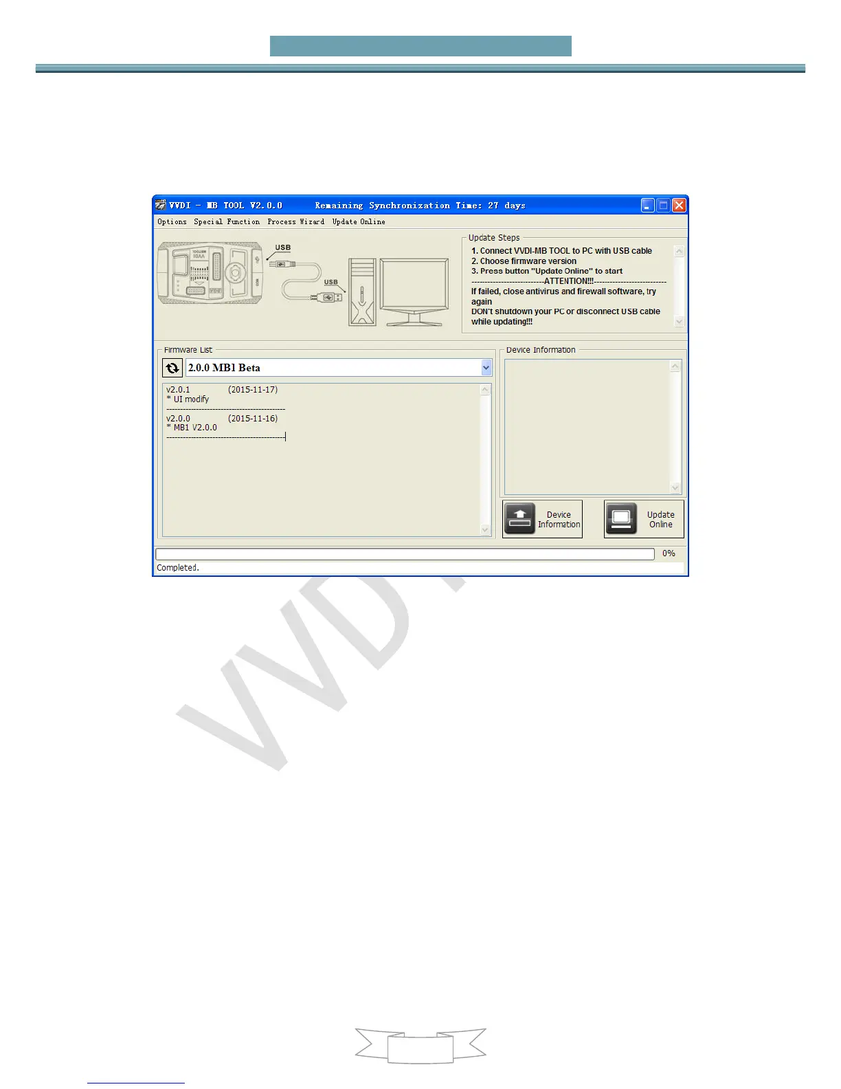 Information, will show you VVDI-MB TOOL Serial Number, current firmware version and