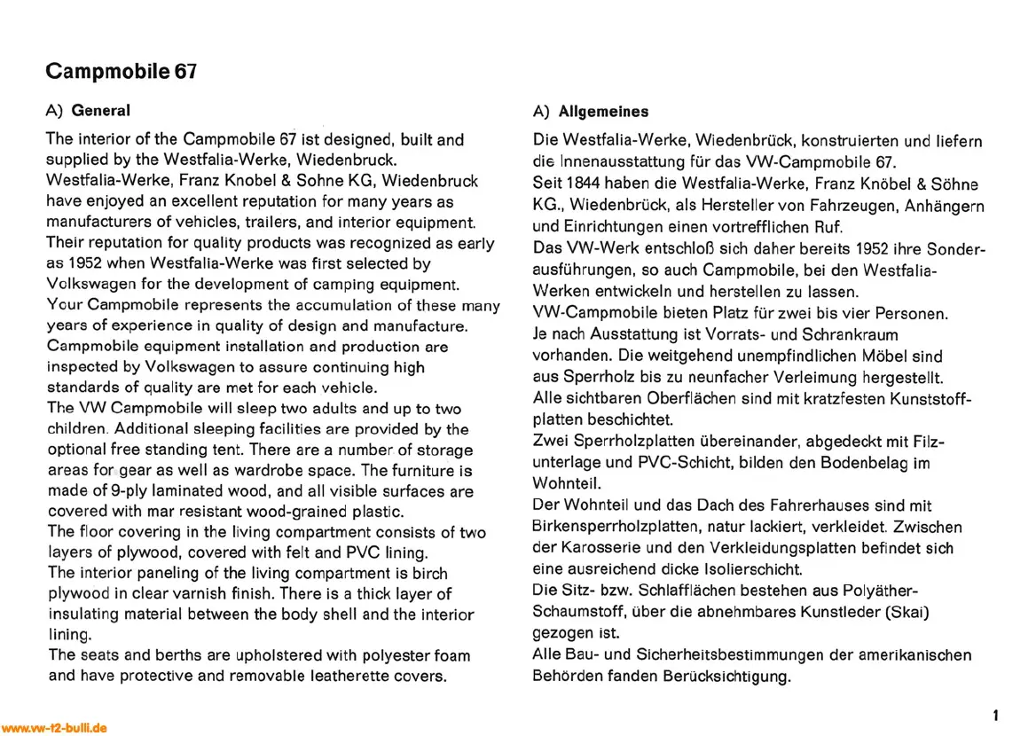 ausführungen, so auch Campmobile, bei den Westfalia-