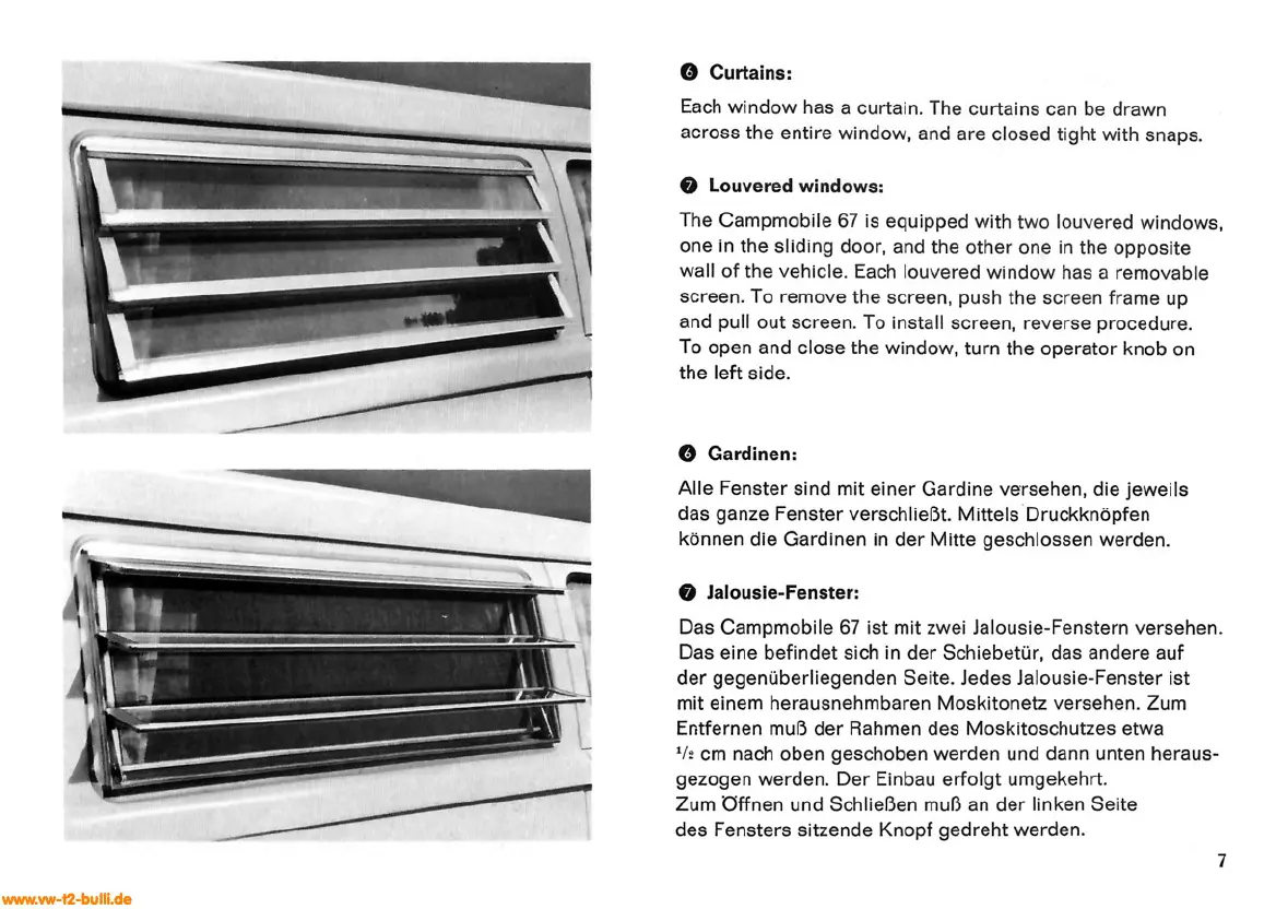 The Campmobile 67 is equipped with two louvered windows,
