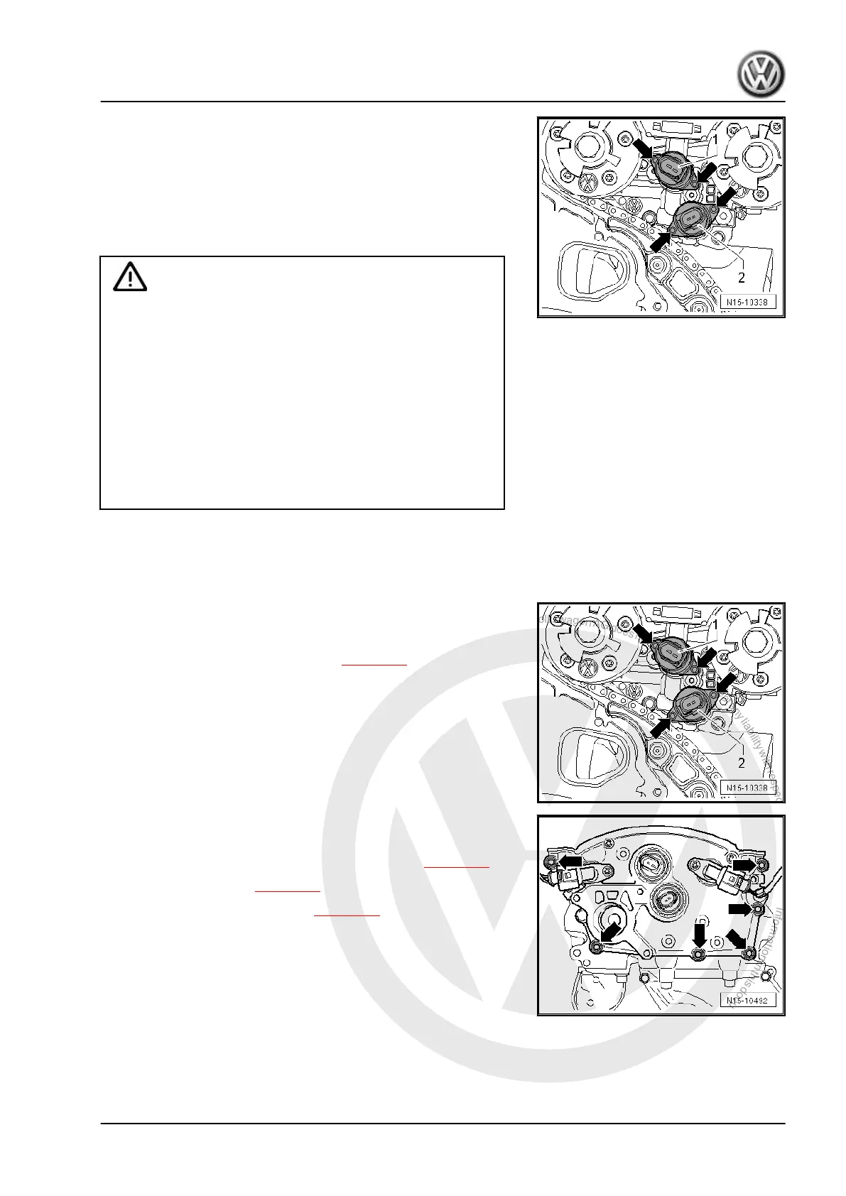 ♦ The camshaft control valves must not be pulled into their