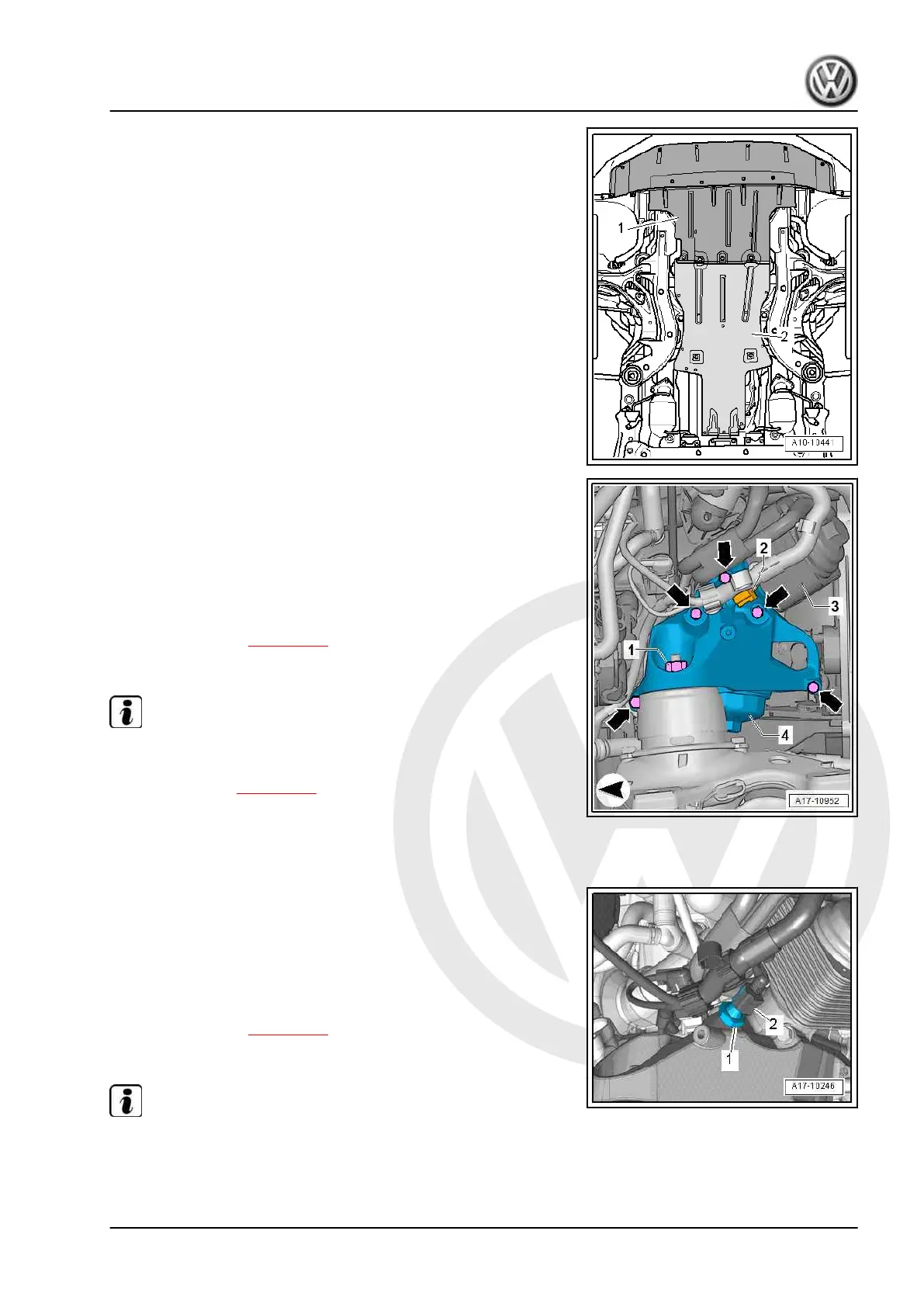 – Remove noise insulation at front -1- and rear -2-.