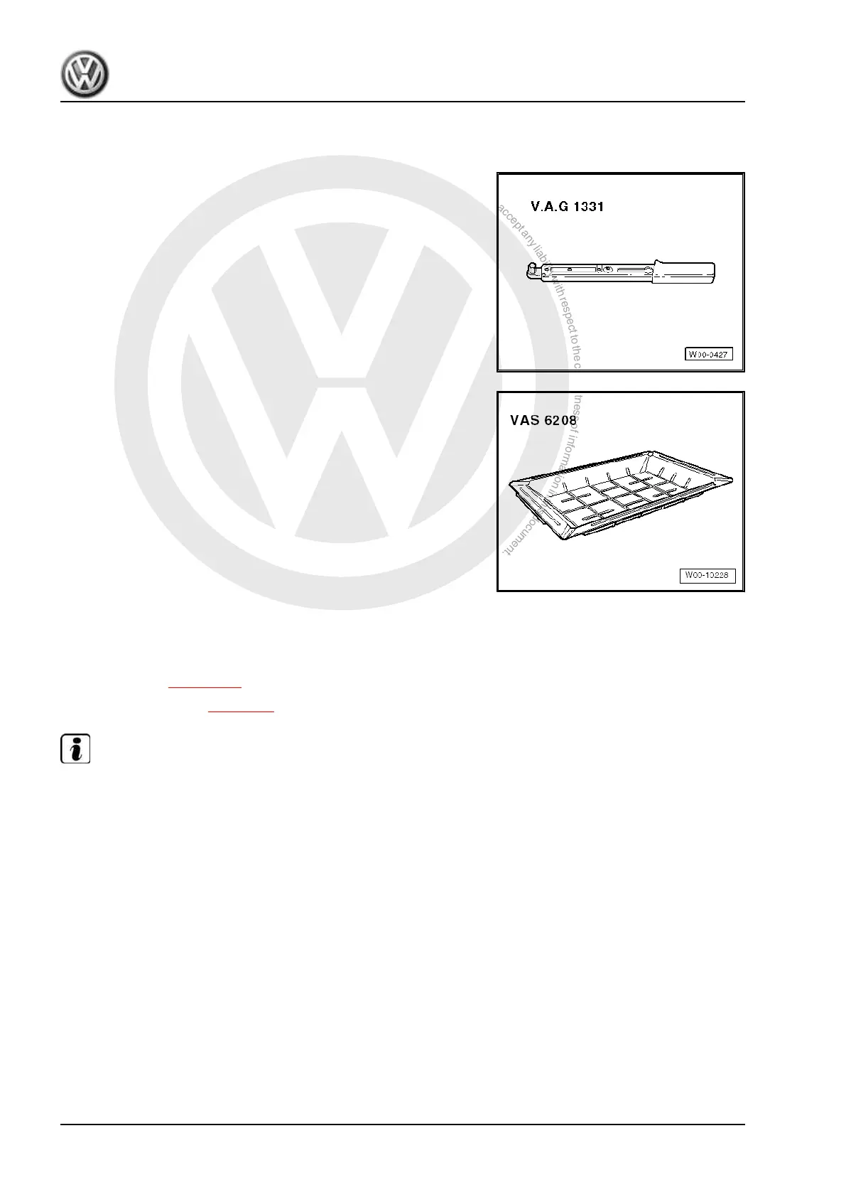 ♦ Drip tray - V.A.G 1306- or drip tray - VAS 6208-
