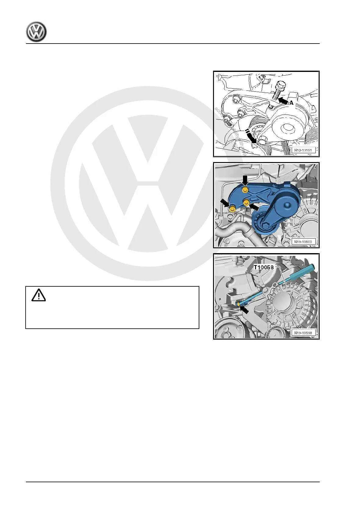 – Press tensioning pulley in -direction of arrow- using a suitable