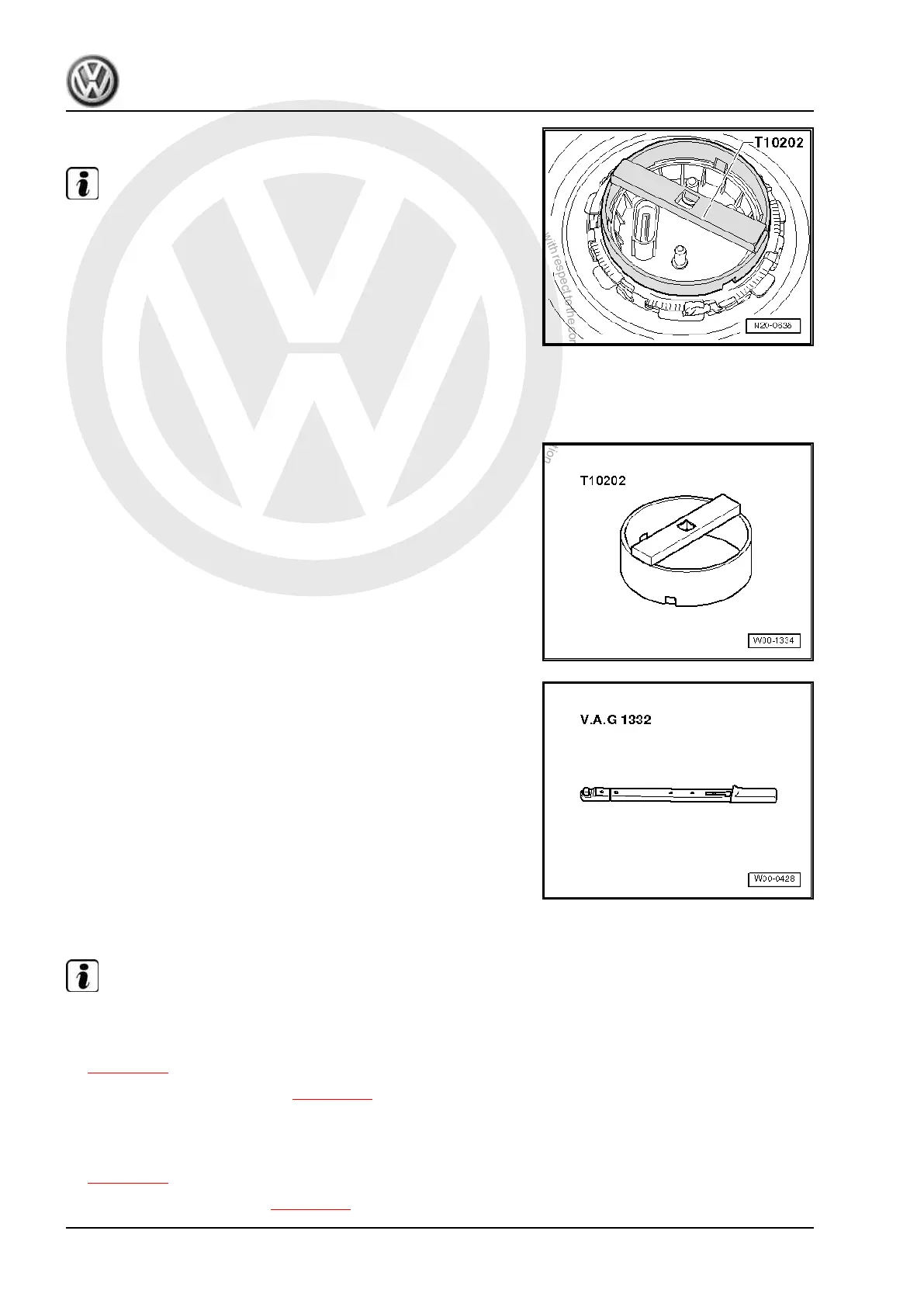 – Use special socket - T10202- to tighten locking ring to 145 Nm.