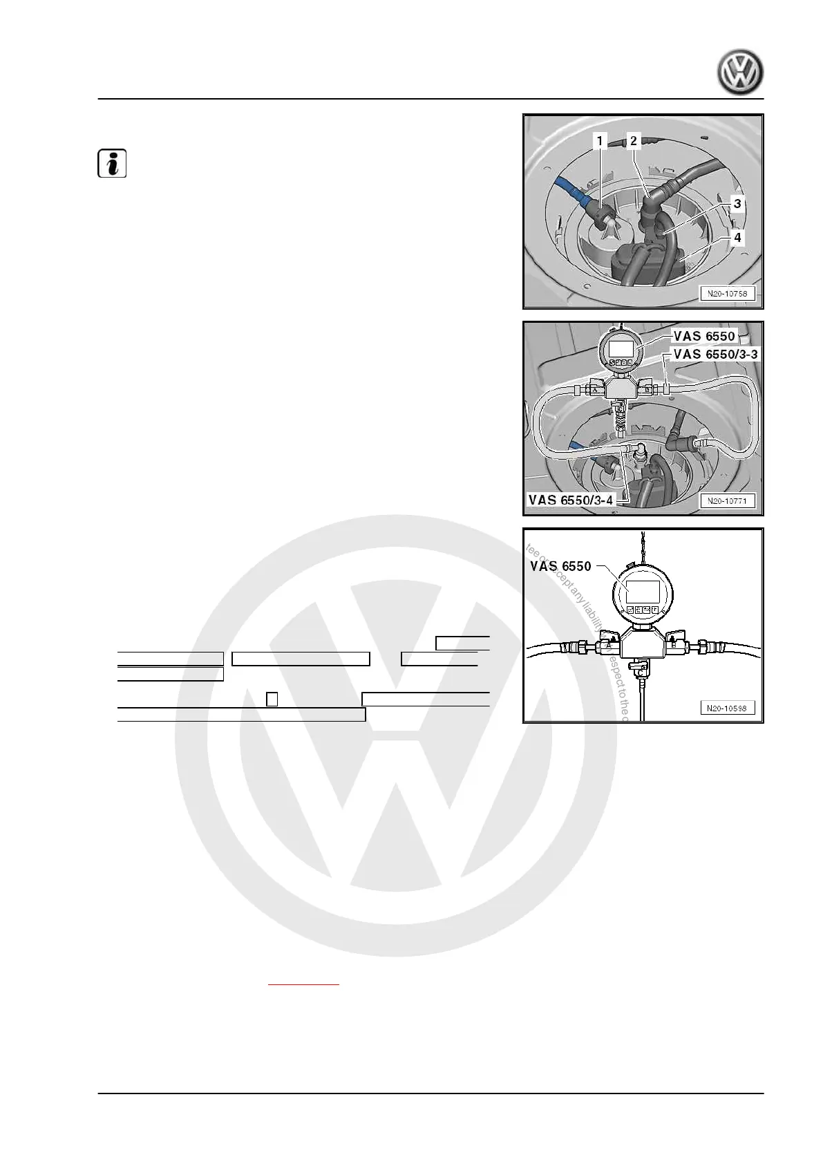 – Connect pressure tester - VAS 6550- to connecting line - VAS