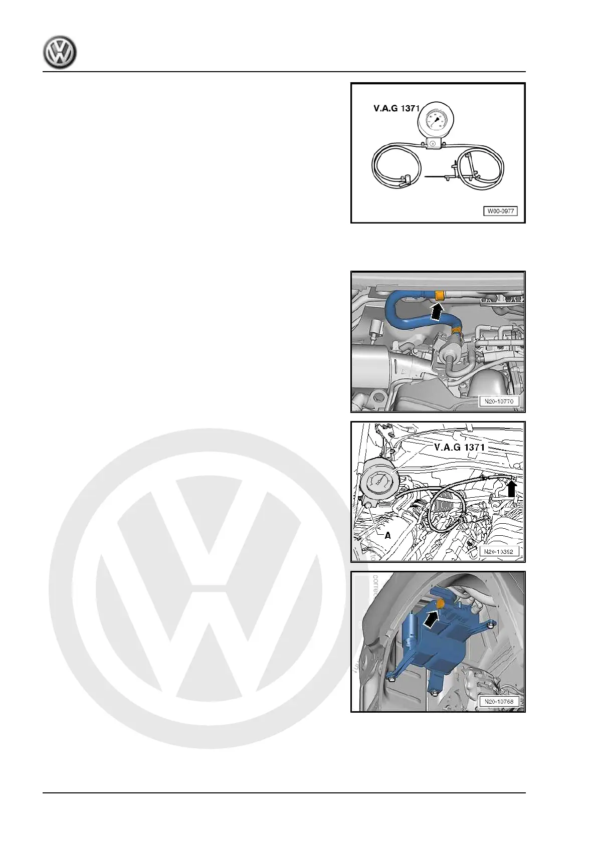 – Connect valve adapter of tester - V.A.G 1371- to tyre valve.