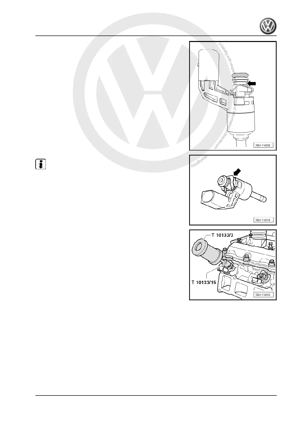 – Then insert puller - T10133/15- into groove -arrow- on injector.