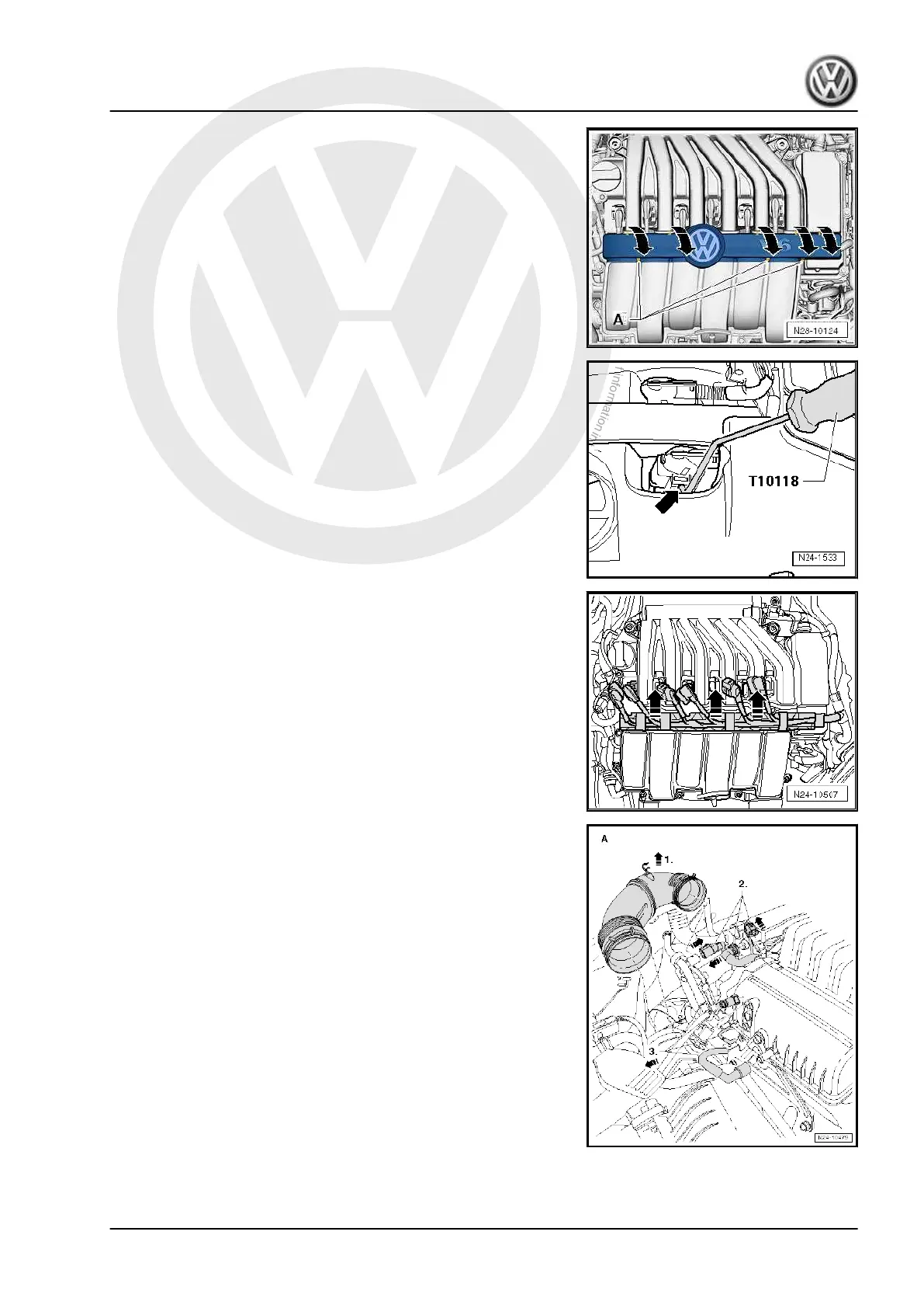 – Unclip cover rail for ignition cable harness -arrows- and re‐