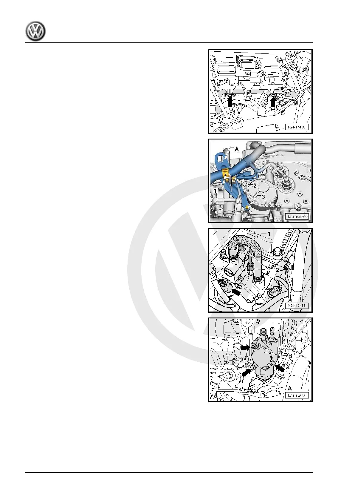 – Unscrew coolant pipe from intake manifold -arrows-.