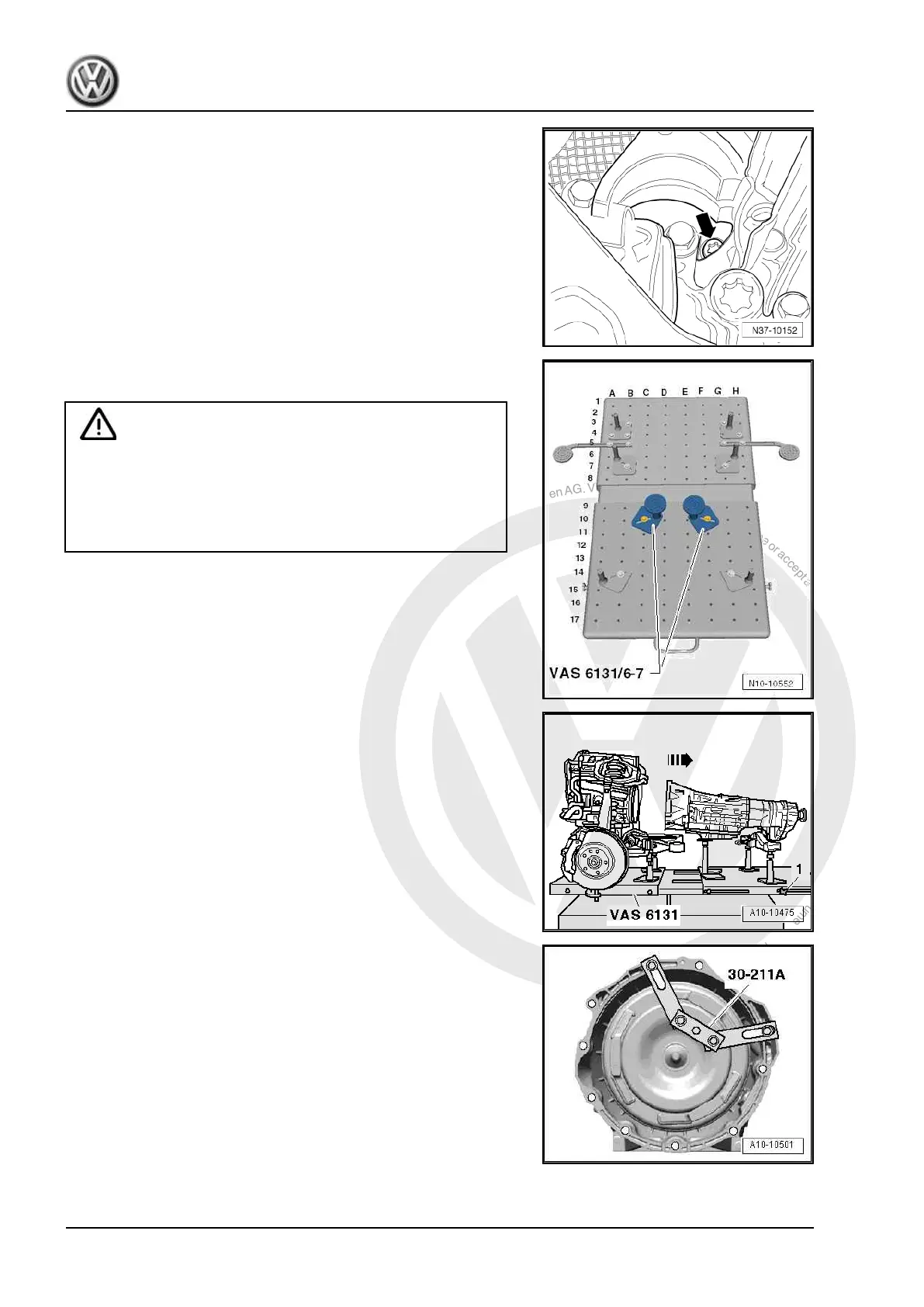 – Tighten supports - VAS 6131/6-7- as shown on scissor-type