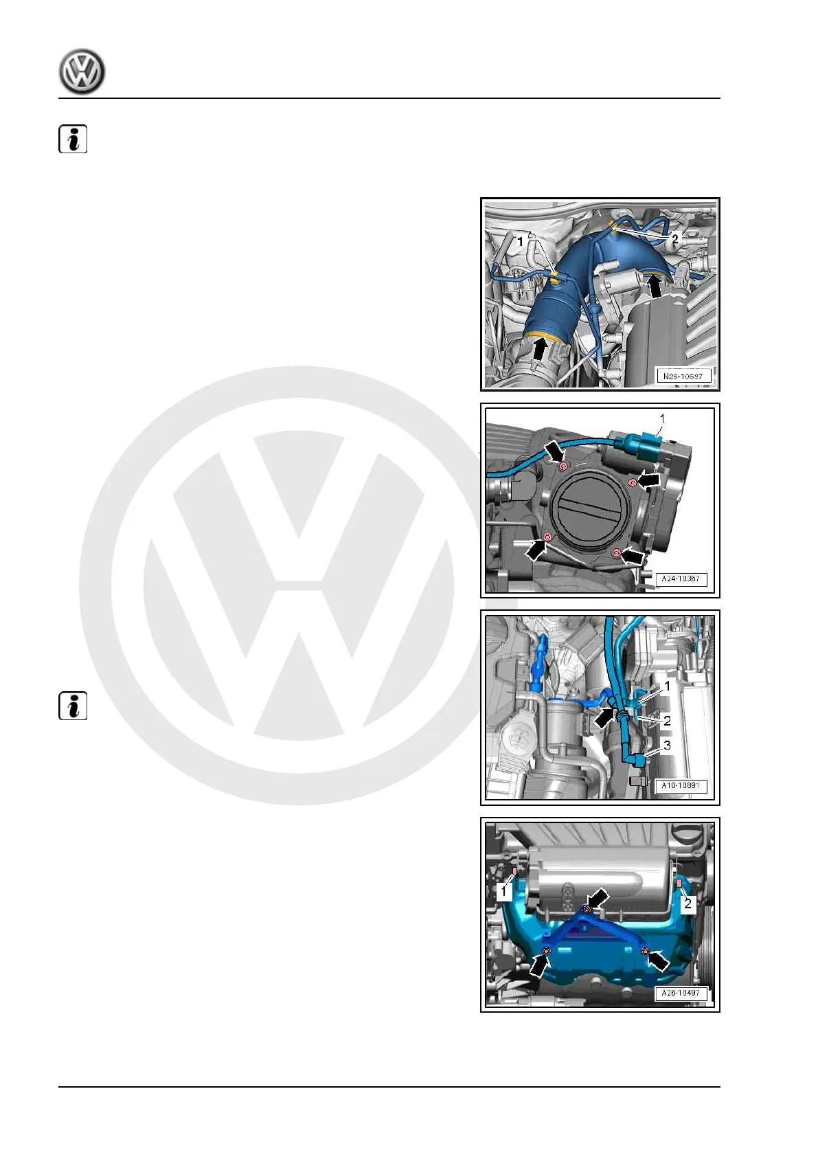 – Remove bolts -arrows- and detach throttle valve module -