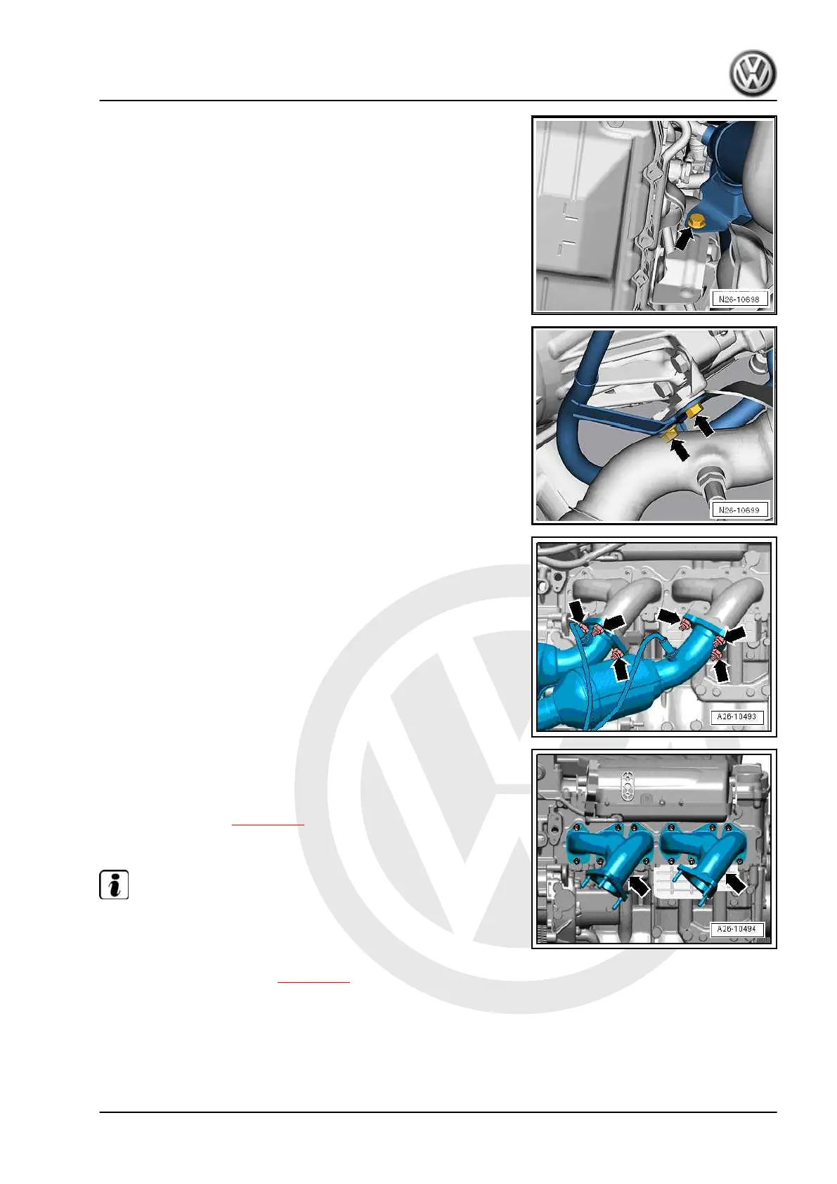 – Undo 6 nuts on each of the two exhaust manifolds -arrows-