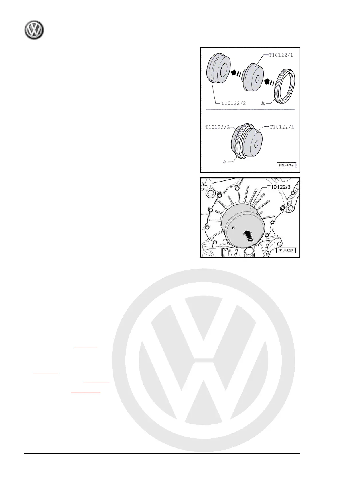 – Pull seal -A- with the outer side over the sleeve - T10122/1- of