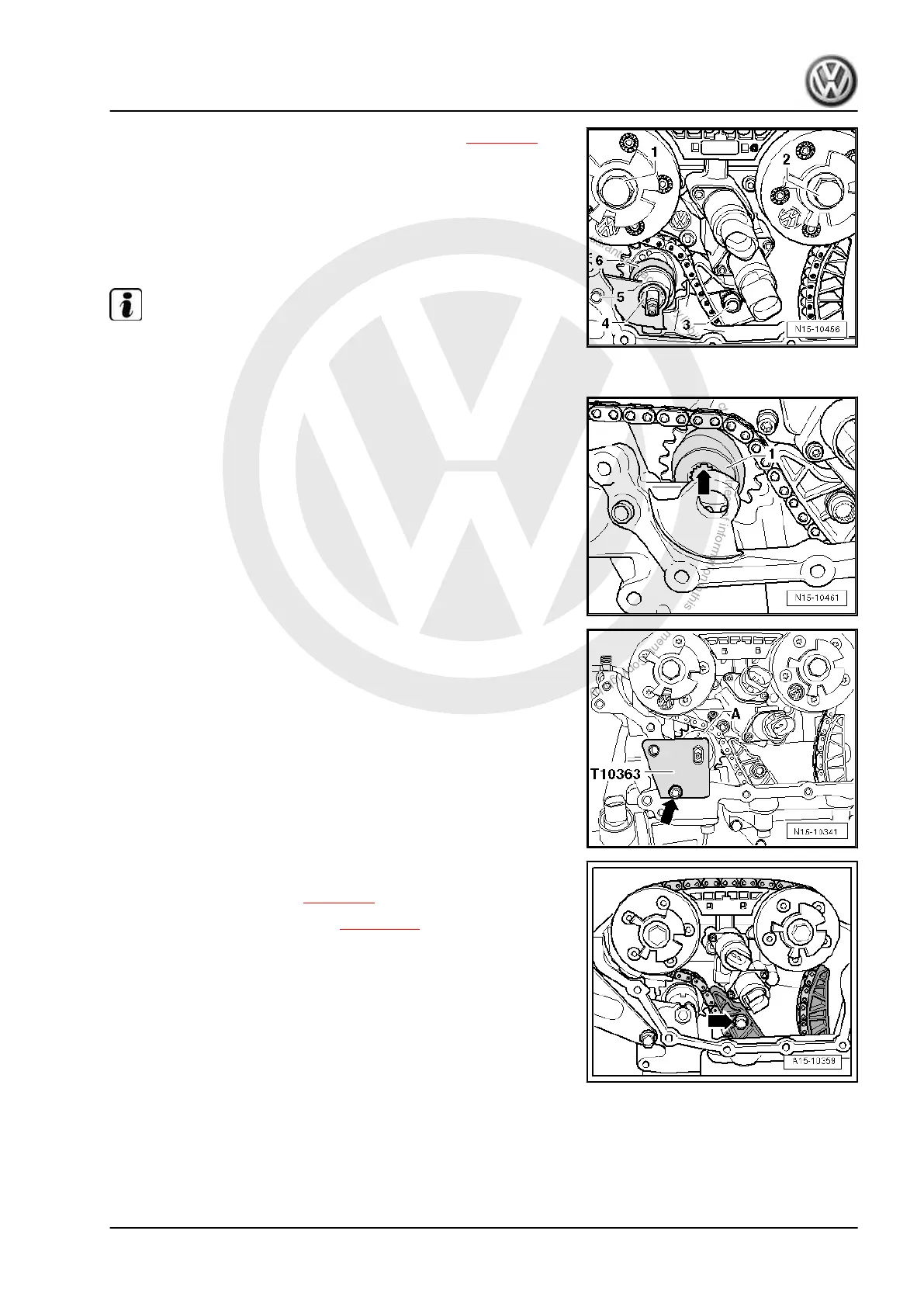 – Fit camshaft timing chain onto chain drive sprocket. Ensure