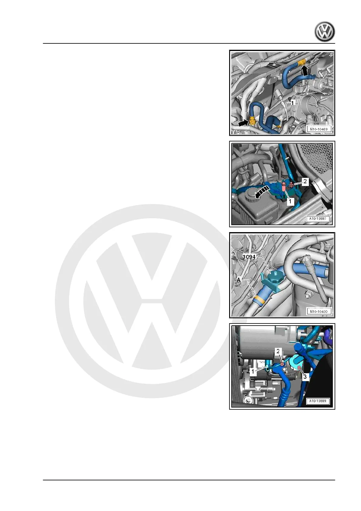 – Disconnect vacuum lines -arrows-. Hose -1- can be disregar‐