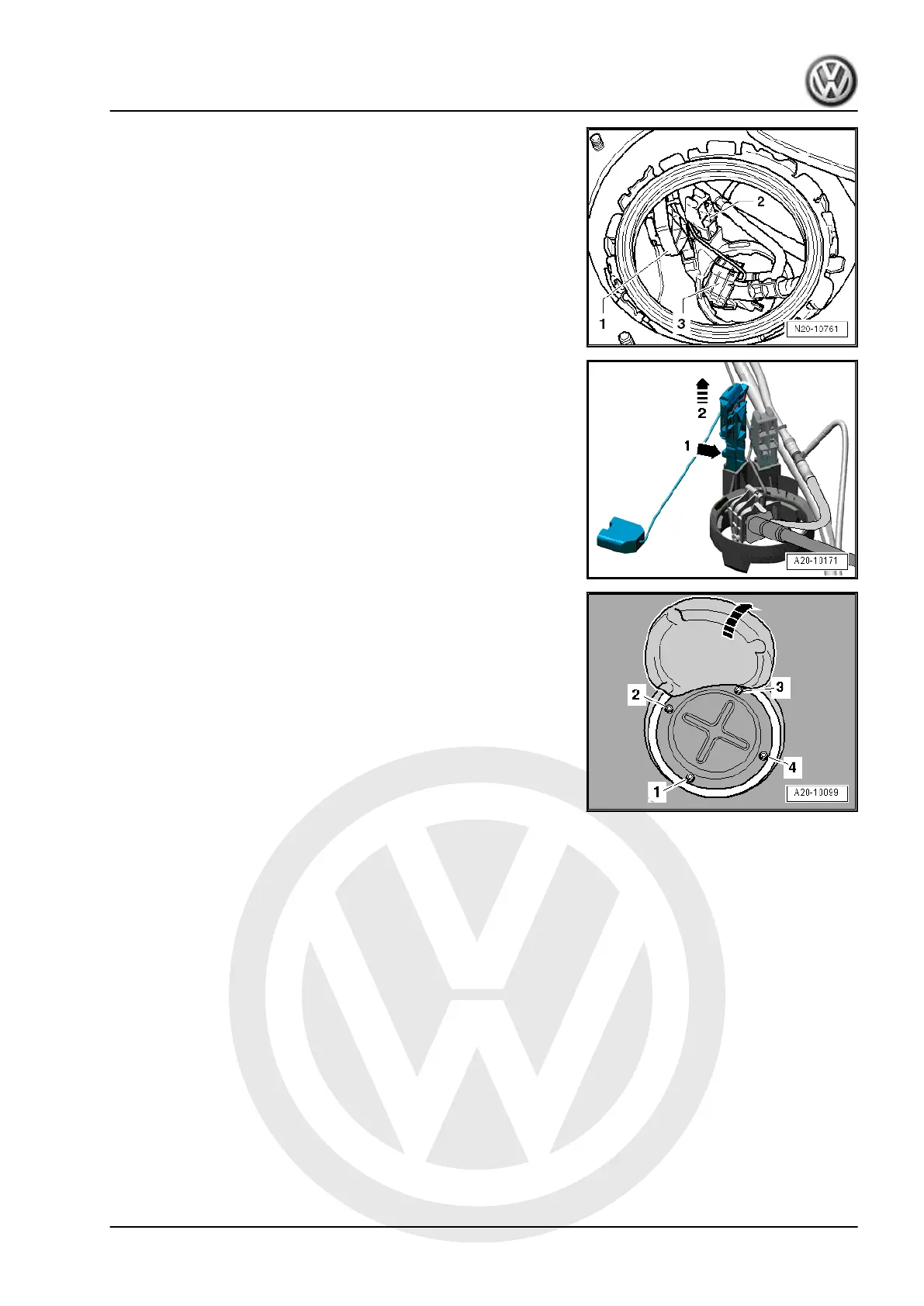 – Unclip fuel gauge sender 2 - G169- -1- and pull out of fuel tank.