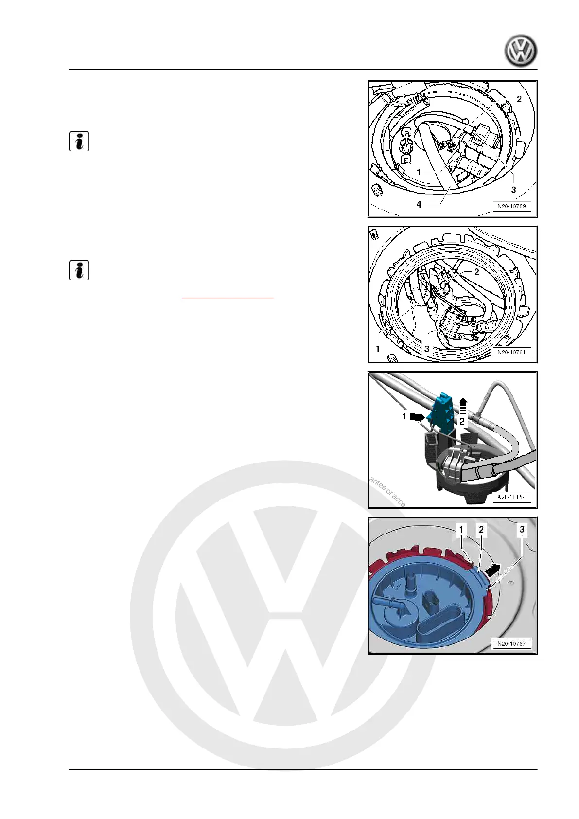 – Unclip black supply/filler hose -1- and -2- from fuel delivery unit