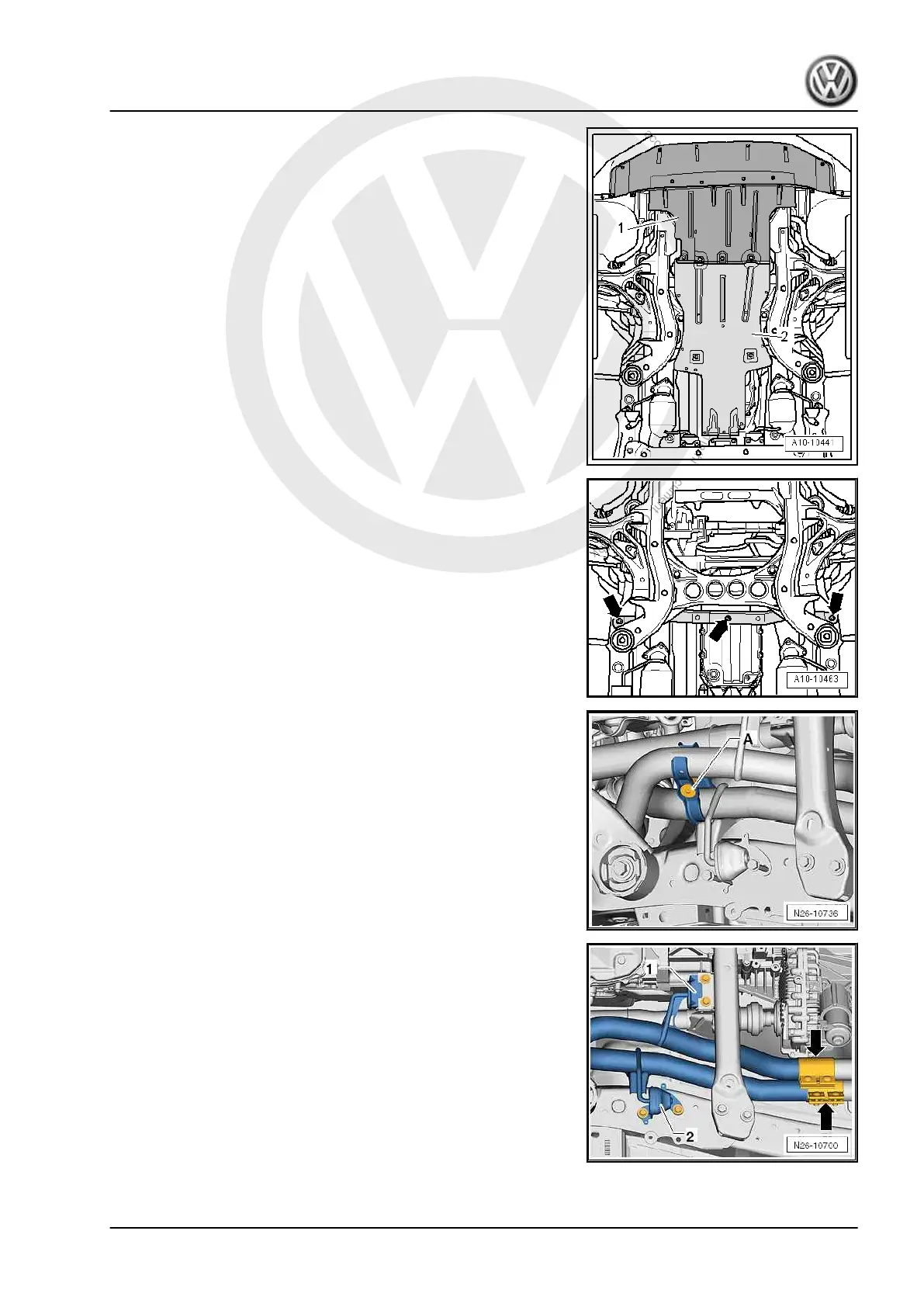 – Unbolt bracket for noise insulation -arrows-.