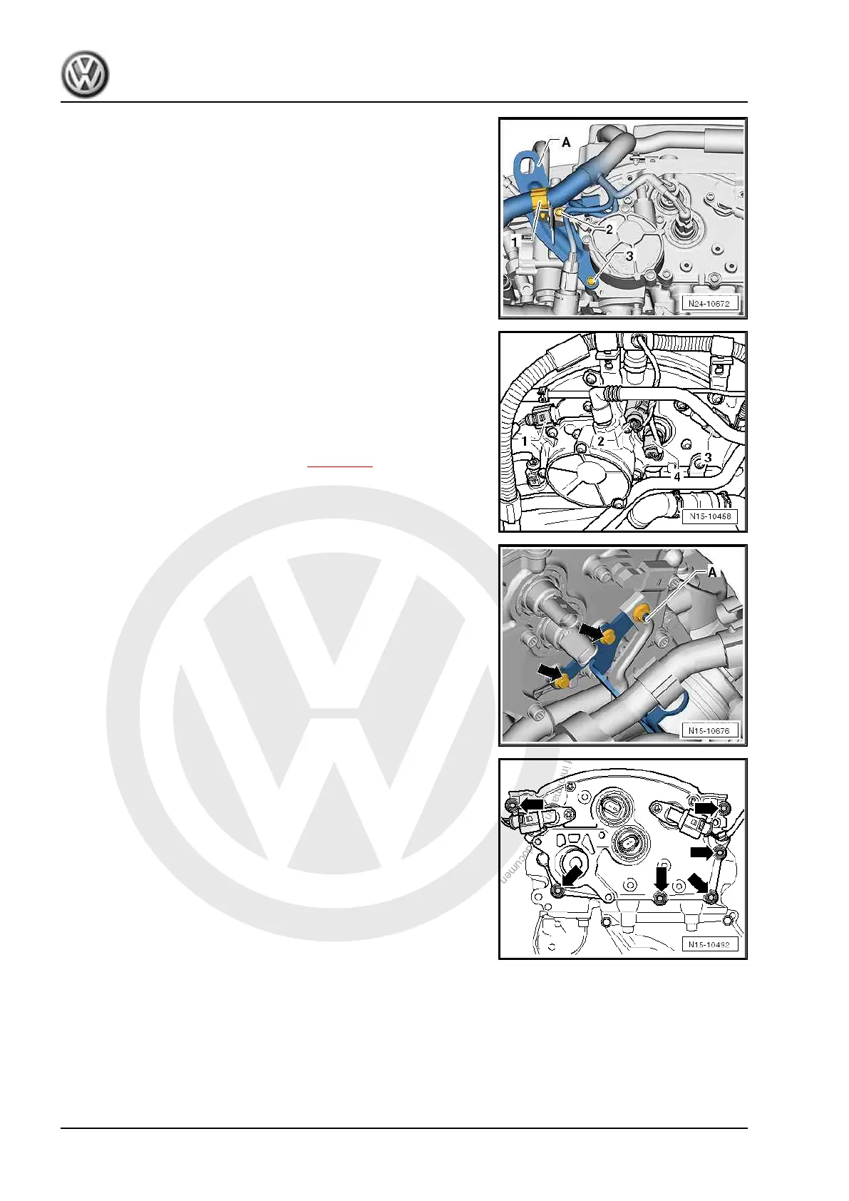– Unclip wiring harness -1-, undo bolt -2- and -3- remove engine