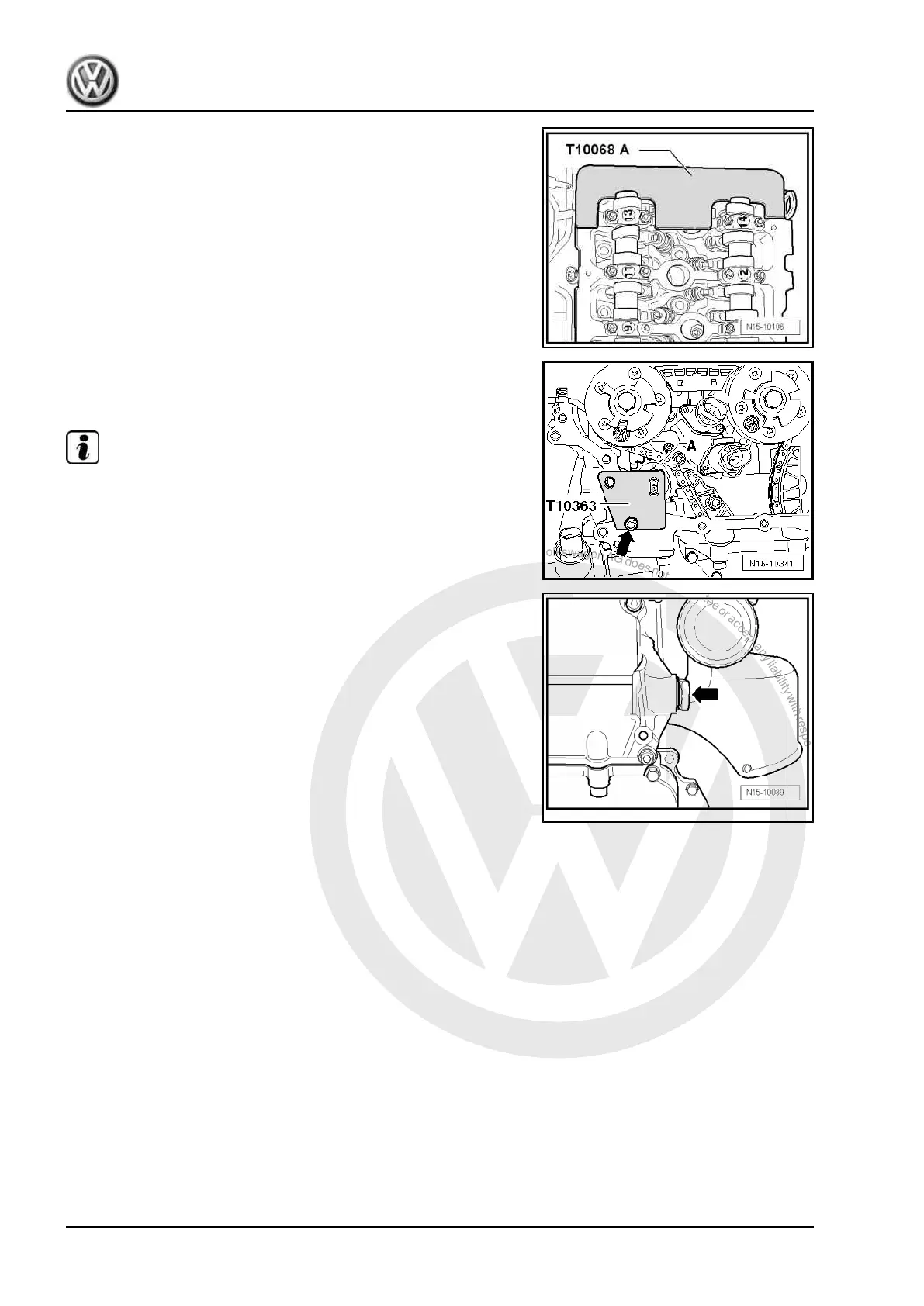 rotation until the journal is vertical and the camshaft bar - T10068