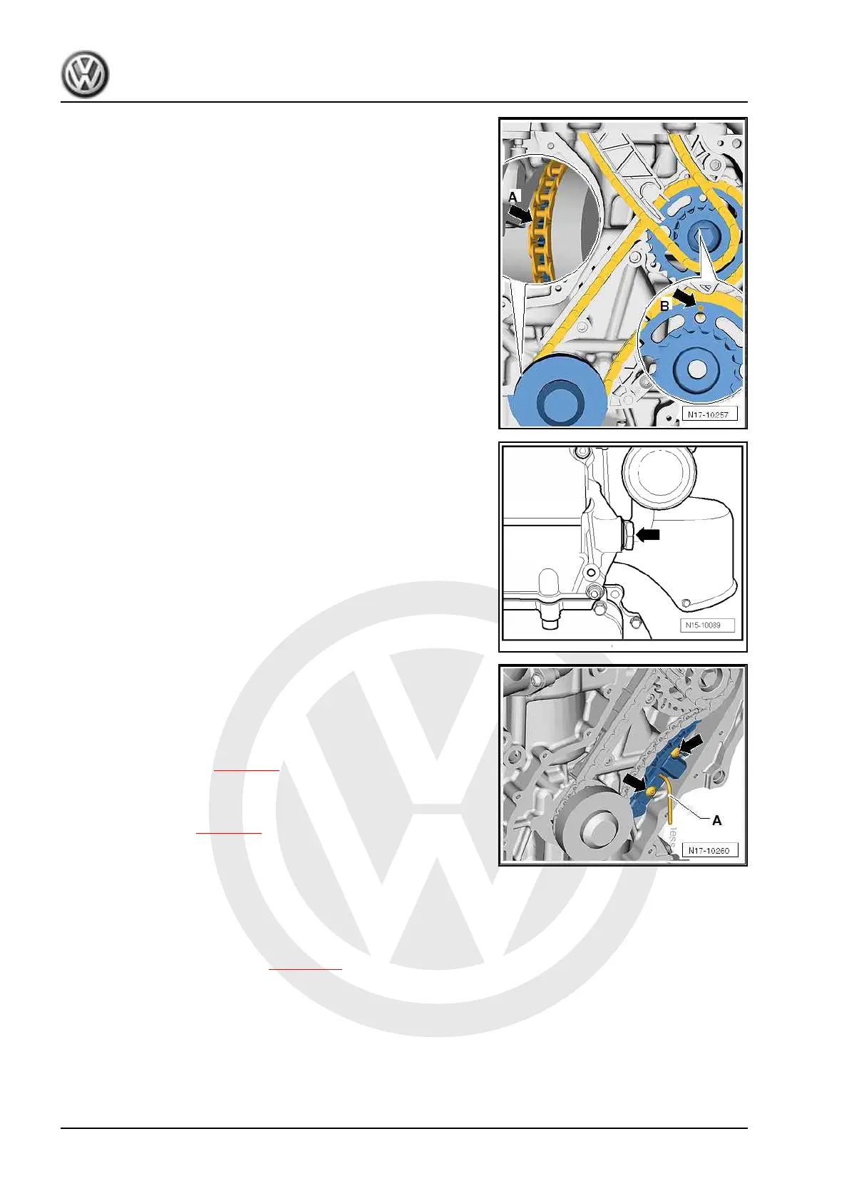 – Install lower chain tensioner and tighten to 8 Nm -arrows-.