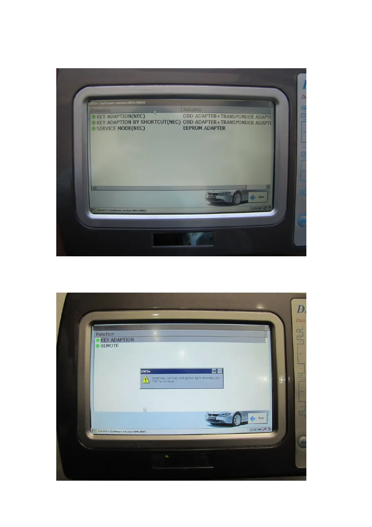 available to hand, one is to turn on the ignition, the others are to be adapted to the car. Press “OK”