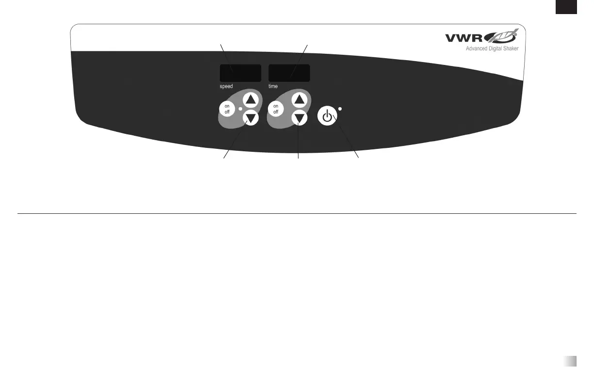 El panel frontal del agitador orbital avanzado contiene todos los controles y las pantal-