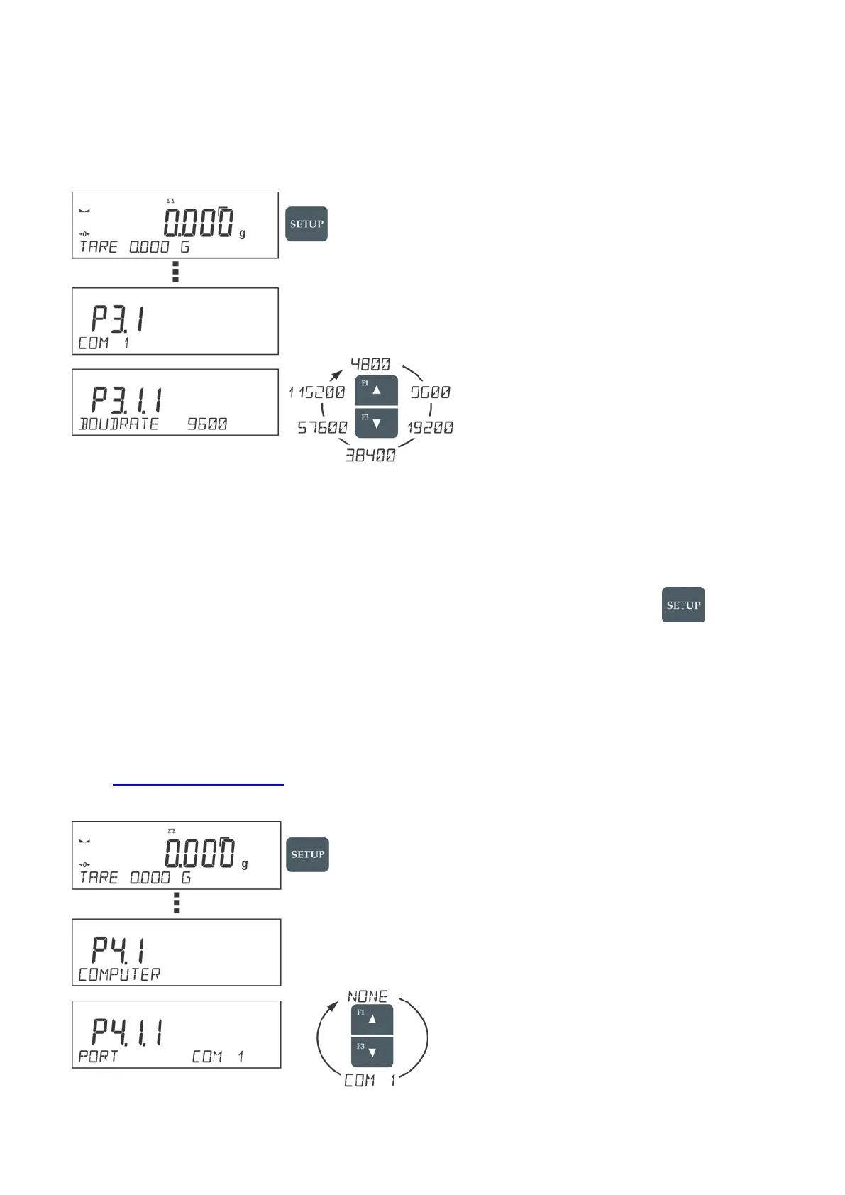 <COMPUTER> submenu allows the user to select a port for connection of a computer running