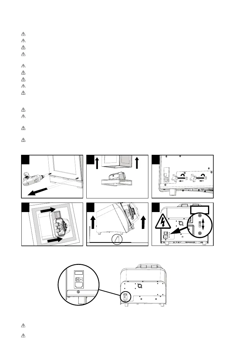 Odstraňte varovné nálepky ze zadní strany jednotky a zkontrolujte, jestli se napětí