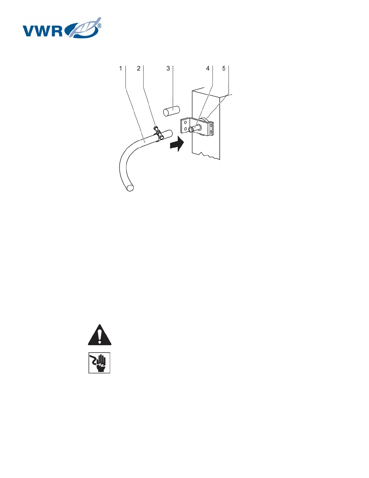 3. Slide hose clamp [2] onto gas pressure hose and connect hose to the sleeve [4] of the sterile