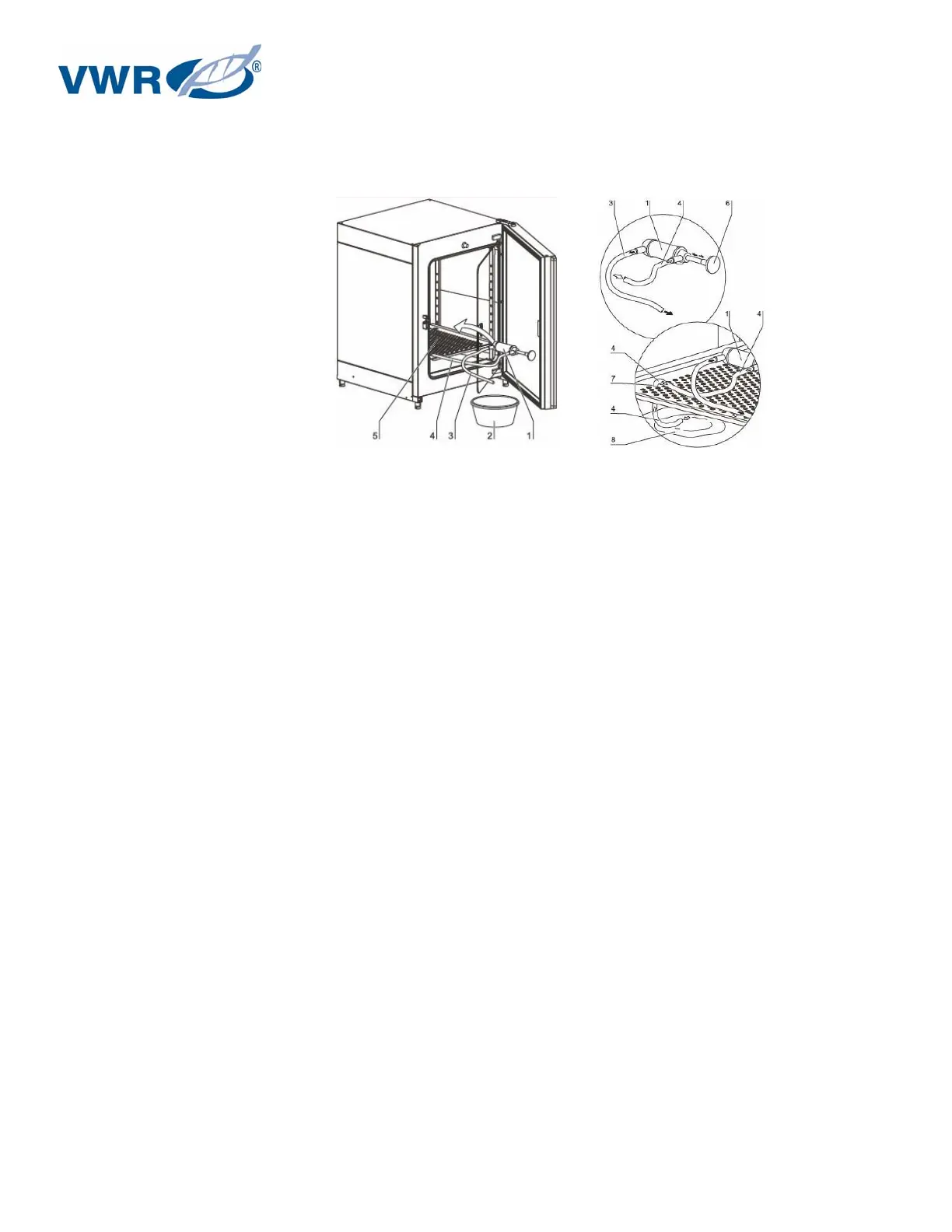 2. Feed the inlet hose [4] through a hole [7] of the lowest shelf to the water reservoir [8].