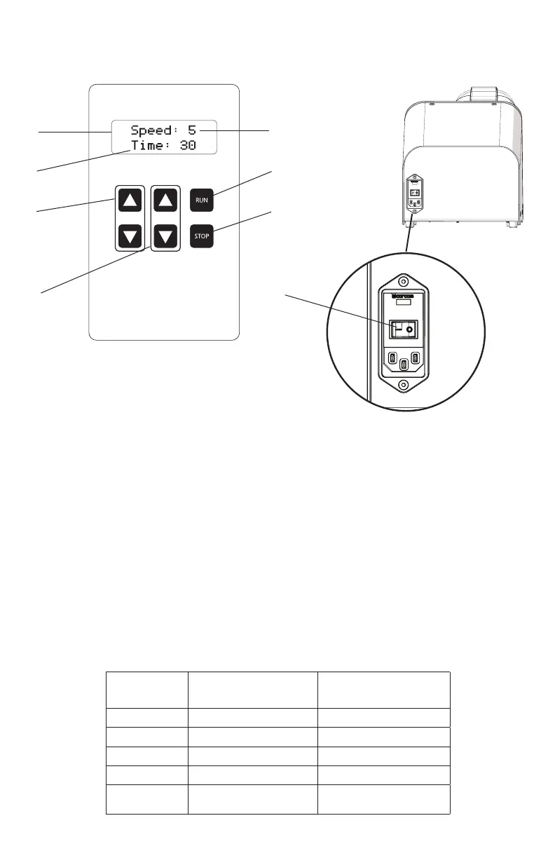 - Ajuste el tiempo de ejecución utilizando los botones arriba y abajo de 1 seg. a 5 min.