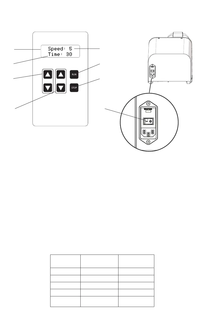 - Adjust run time using up and down buttons from 1 sec. to 5 min.