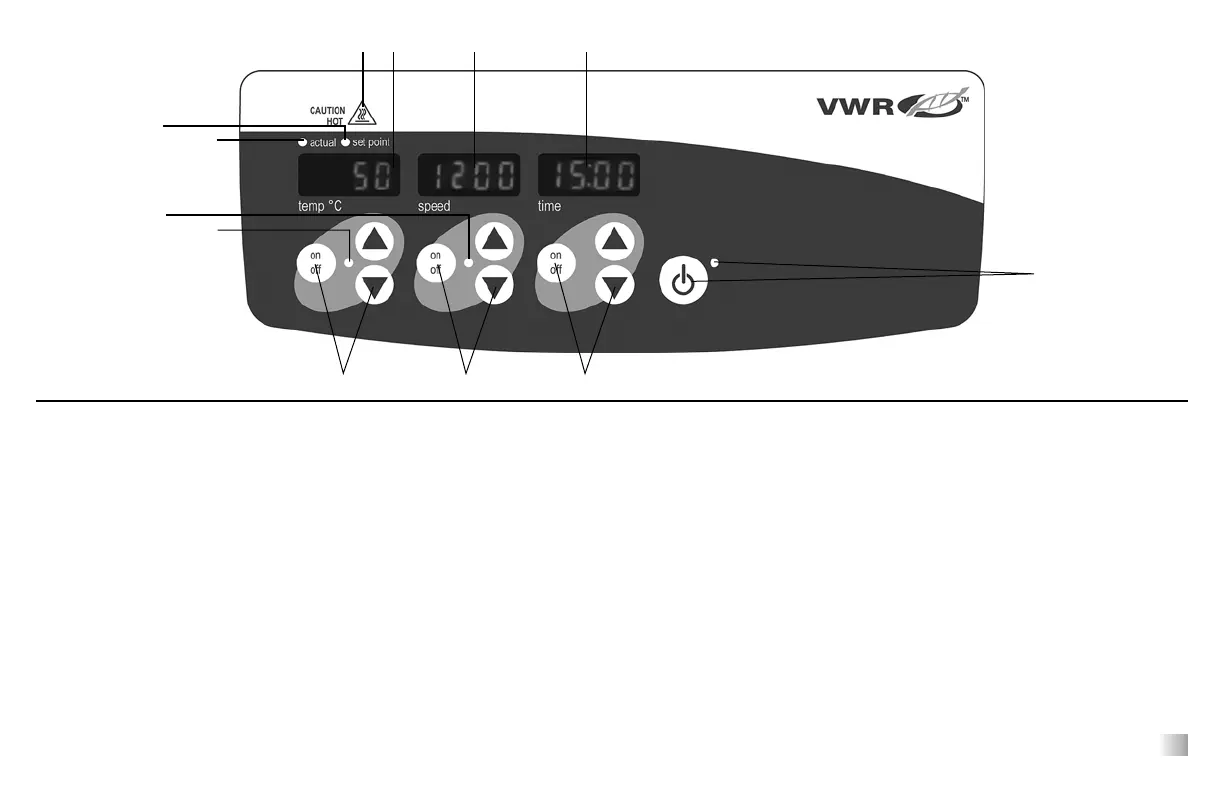 botón de espera para activar las funciones de temperatura, velocidad y tiempo.