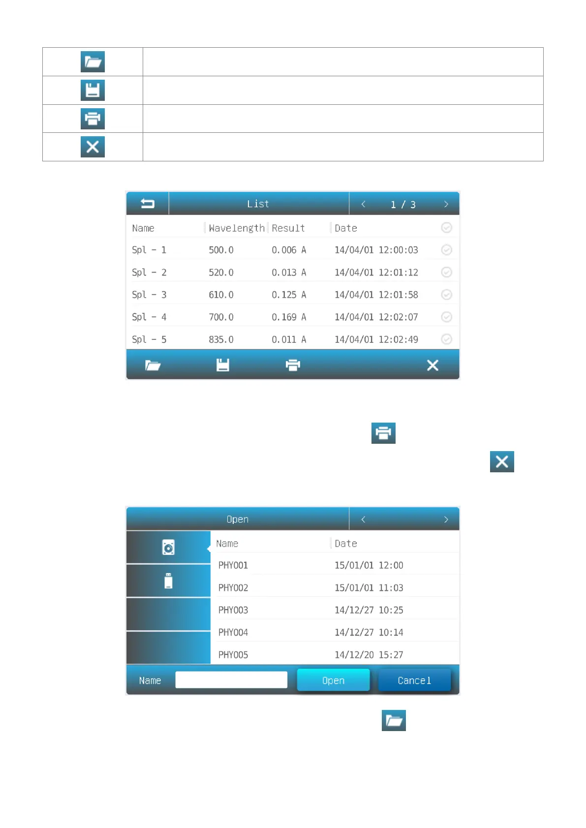 Save Save result(s) to internal/USB memory.
