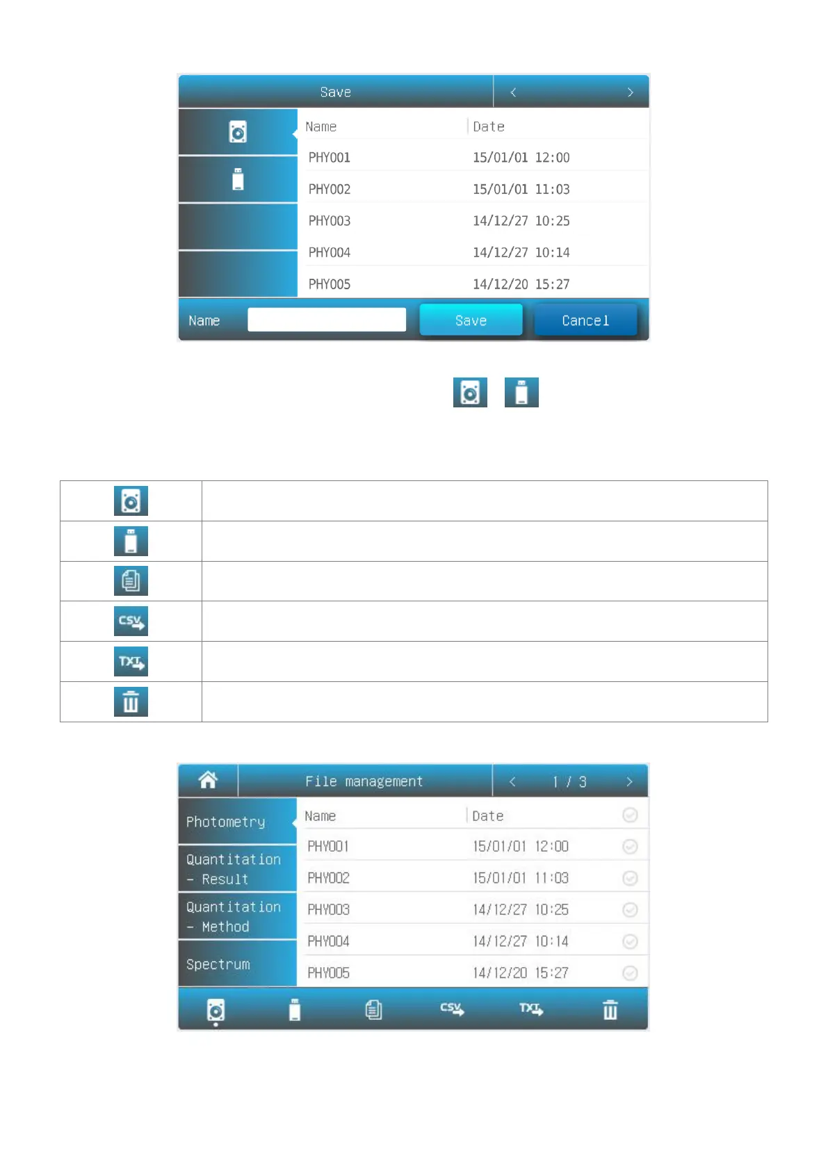 Internal Memory Internal memory of the spectrophotometer.