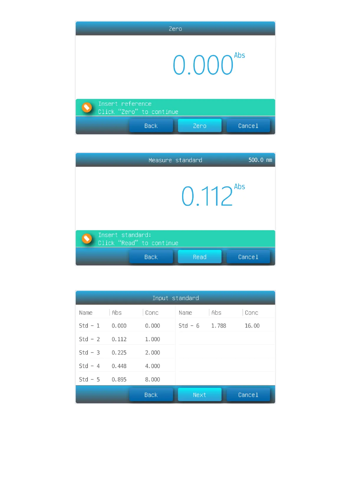 (4) Press the item to input concentration of standard samples, press the button Next.