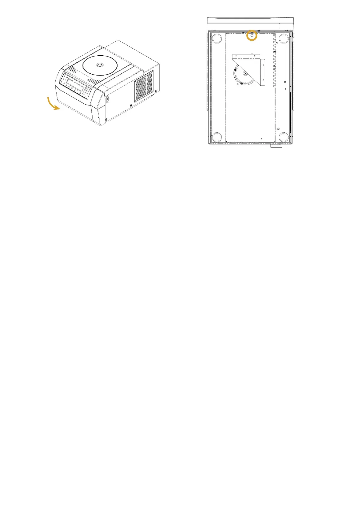 Reconnect the centrifuge once the power has been restored. Switch on the centrifuge. Press the OPEN key