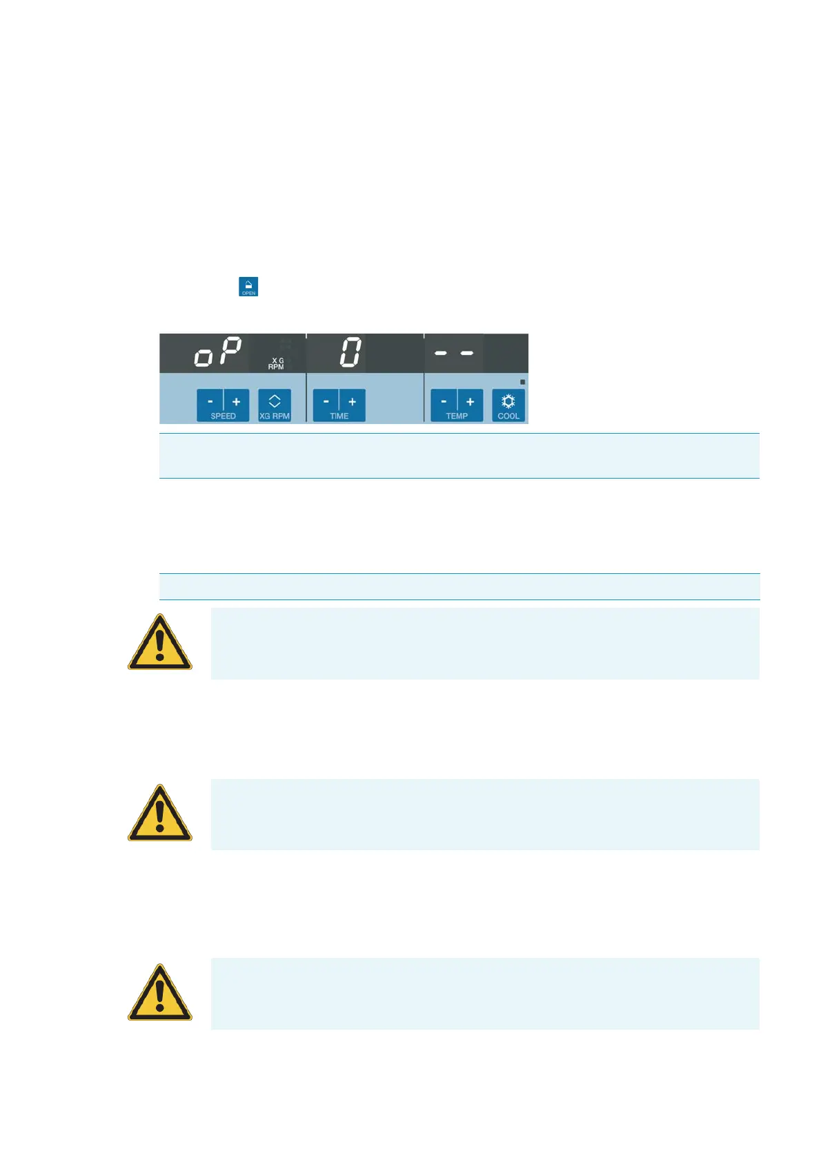 The centrifuge shows the actual value in the display. Speed and runtime show 0. The display shows