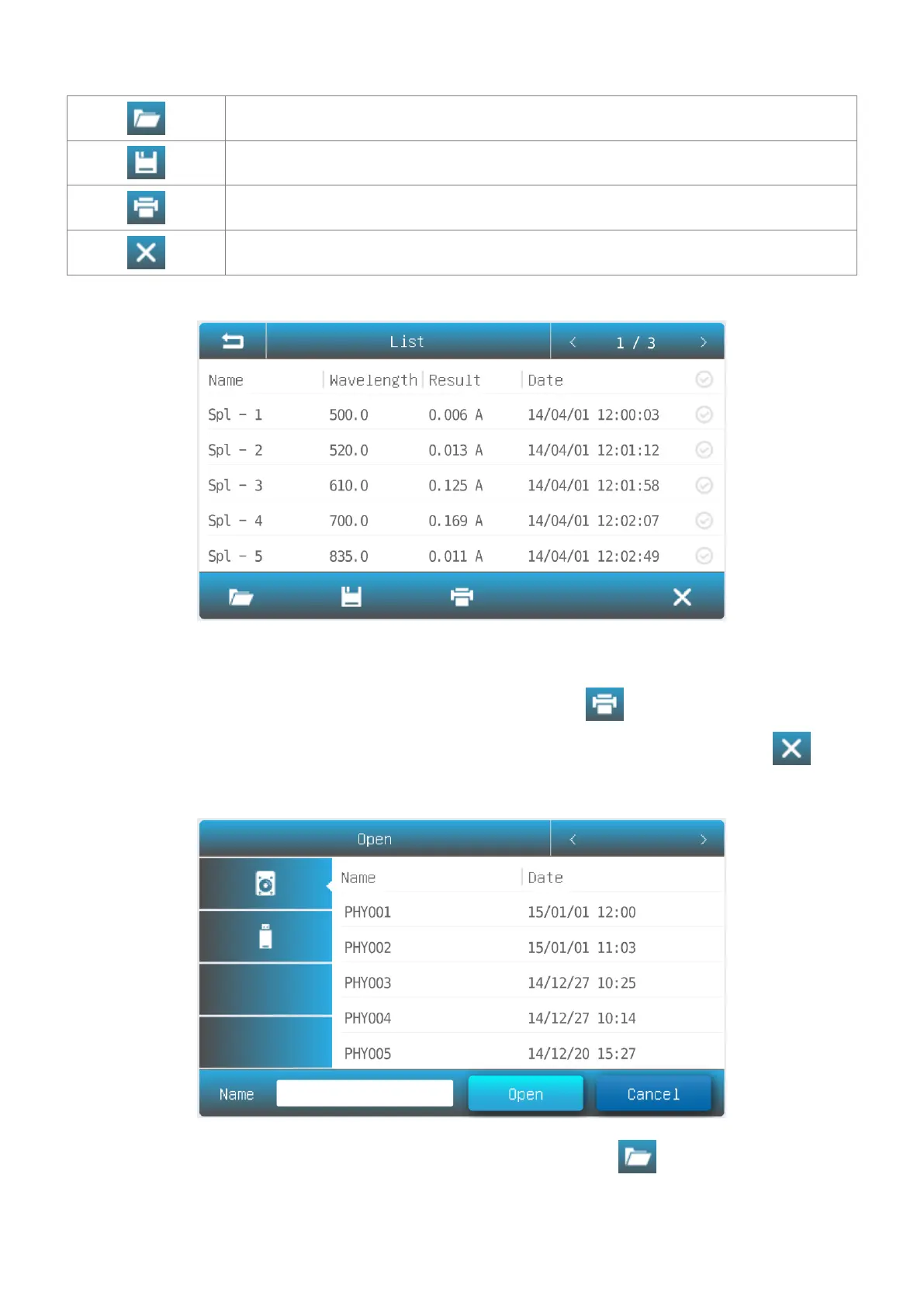 List interface, press the icon .