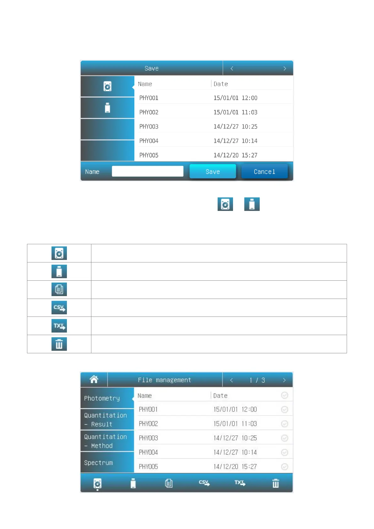 Copy Copy the selected file(s) from internal /USB memory to USB/internal memory.