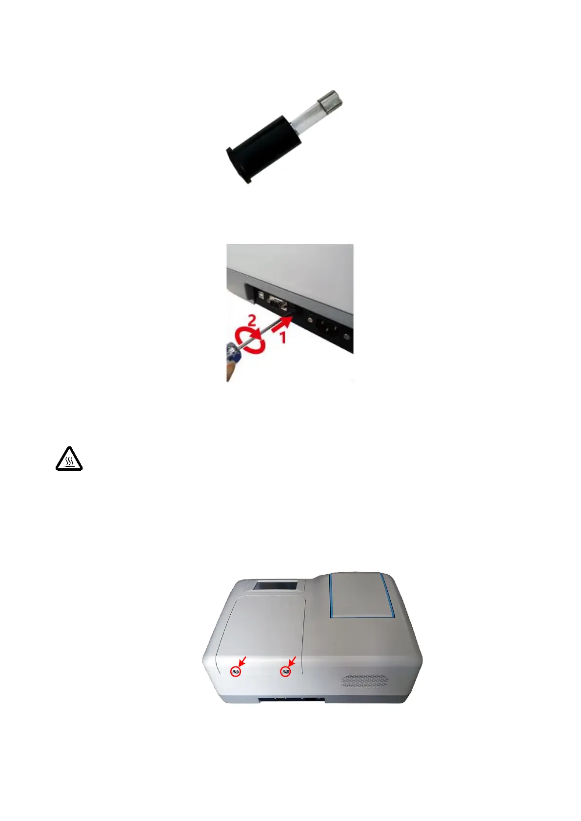 Unplug the connector(No. 1) .Unscrew the 2 screws on the D2 Flange (No.2) and remove the D2 lamp. Draw